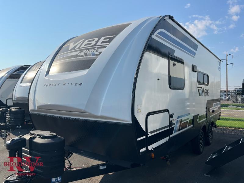 Each Vibe travel trailer by Forest River includes Hyper Lyte construction and a durable laminated "Aluma Frame" for years of use. The heated and enclosed underbelly allows you to extend your camping season, and the walk-on truss roof with XTRM PVC roofing will be easy to keep clean. Inside, you'll enjoy the custom built cabinetry, solid surface thermofoil wrapped kitchen countertops, and ultra bright LED lighting throughout. These models also include cable and satellite prep and a digital TV antenna with a booster so you can stay connected to the outside world if you choose. Make the easy choice and choose a Vibe travel trailer today!