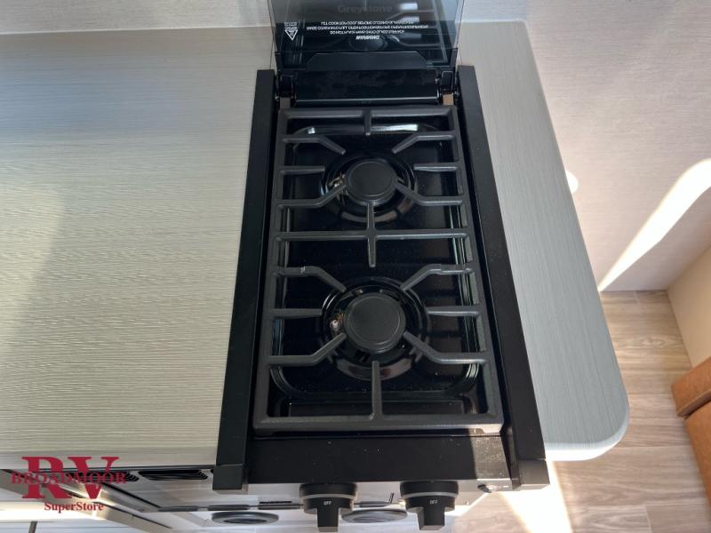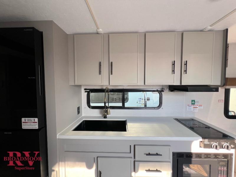 You're sure to make lasting memories in this rear bath travel trailer! There is a large pass-thru storage outside, along with a universal outside kitchen with a spray port, refrigerator, and an induction cooktop so you can enjoy the fresh air as you cook. Inside, you'll find a bar top with two stools and a flip-open window for great outdoor views. A walk-in pantry will allow you to keep snacks and canned goods stocked, and the full rear bath offers privacy. This unit also includes a front jackknife sofa and a Murphy bed, providing you with versatile seating and sleeping spaces. There are also dual wardrobes to keep your things organized plus dual nightstand that are CPAP ready!