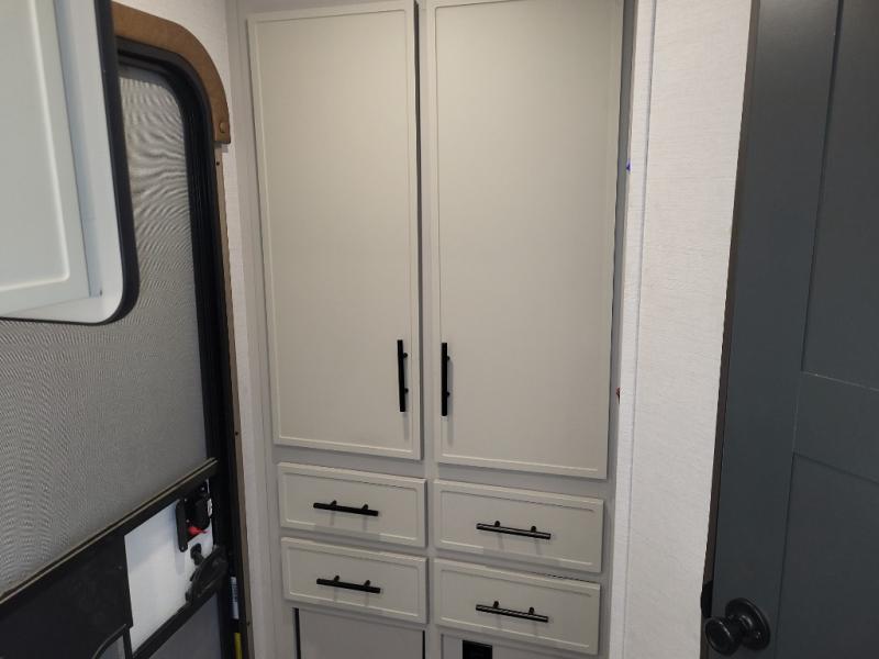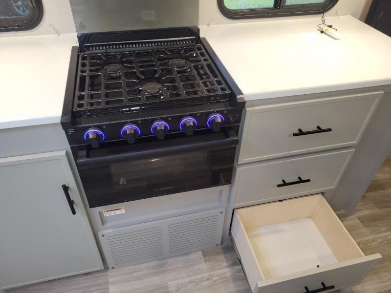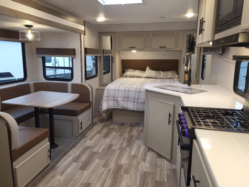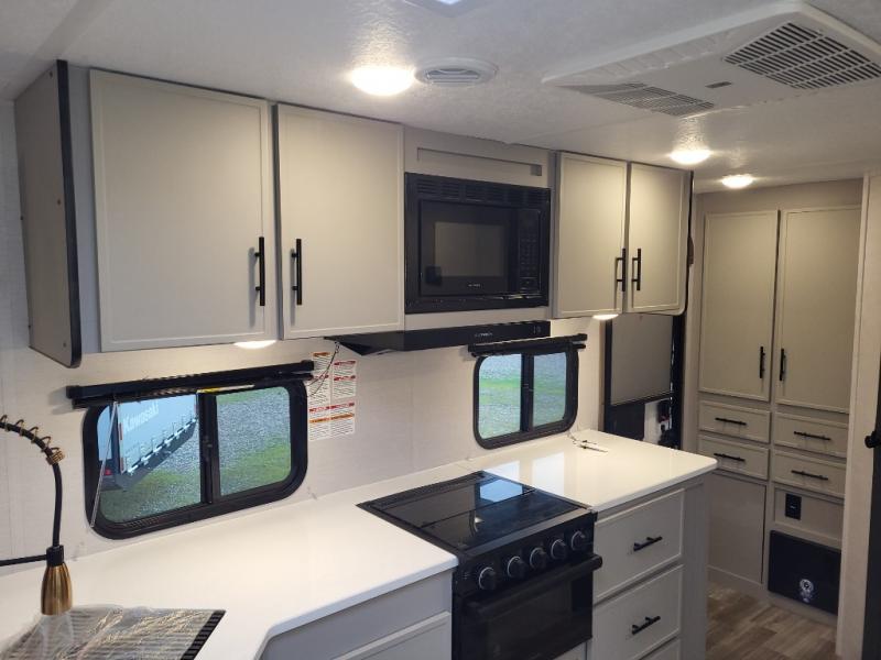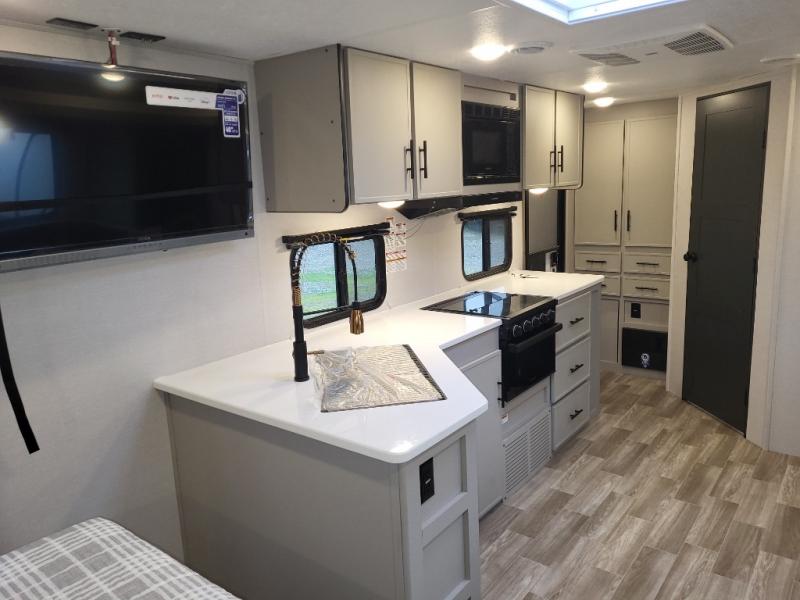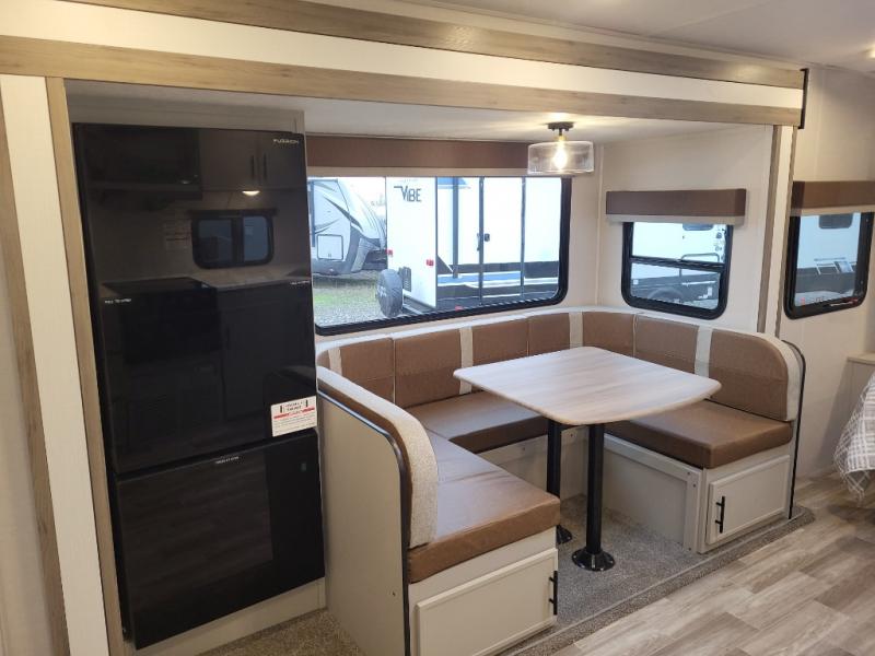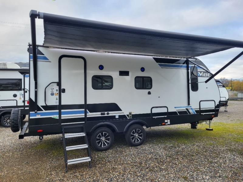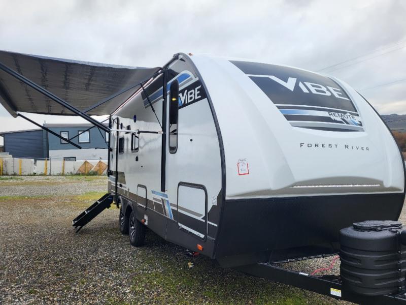 Each Vibe travel trailer by Forest River includes Hyper Lyte construction and a durable laminated "Aluma Frame" for years of use. The heated and enclosed underbelly allows you to extend your camping season, and the walk-on truss roof with XTRM PVC roofing will be easy to keep clean. Inside, you'll enjoy best-in-class panoramic windows, a 12V oversized refrigerator, plus screwed and glued cabinets with residential steel ball bearing drawer guides on all drawers. These models also include cable and satellite prep and a digital TV antenna with a booster so you can stay connected to the outside world if you choose. Make the easy choice and choose a Vibe travel trailer today!