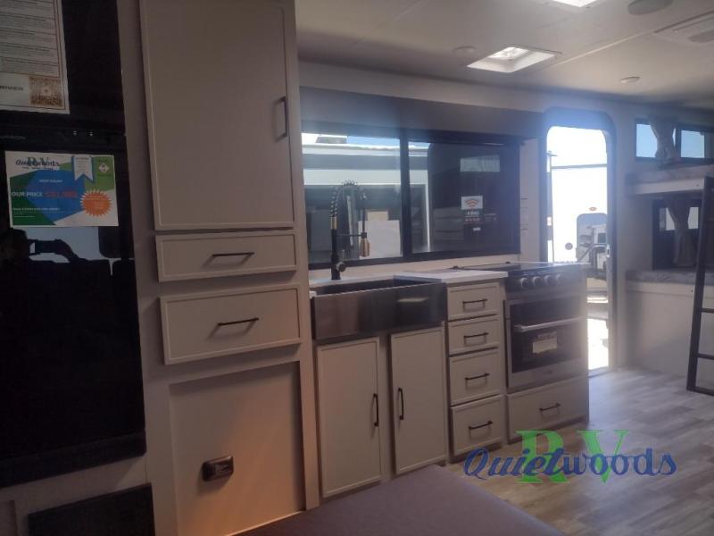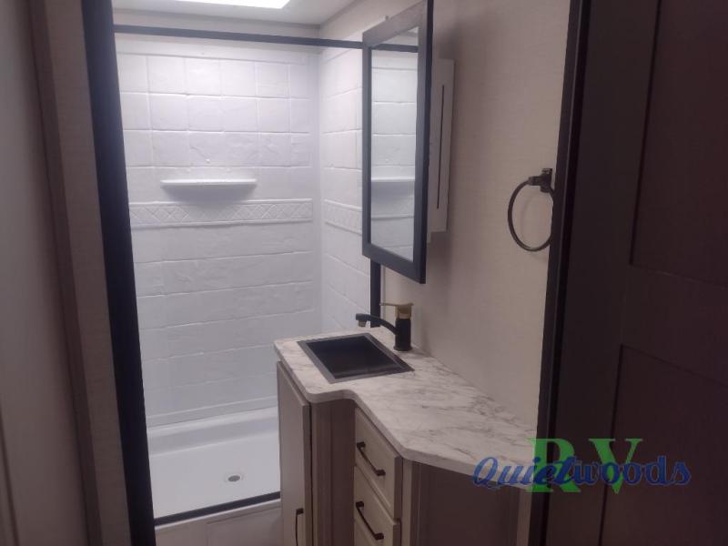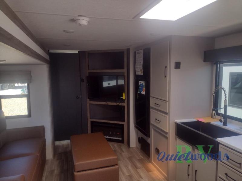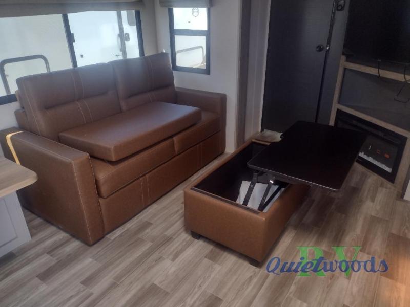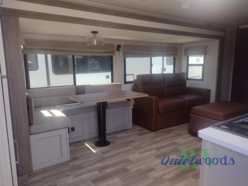 Are you looking to upgrade your RV to a trailer with more space and more features? Look no further than this Vibe! The kids are sure to claim the double-size bunks to themselves, while the adults take the front private bedroom with the queen bed. You will find even more sleeping space on the 5-person dinette and tri-fold sofa within the large slide out. After a day outdoors at the lake, get cleaned up in the full bath that includes a 40" x 30" shower.