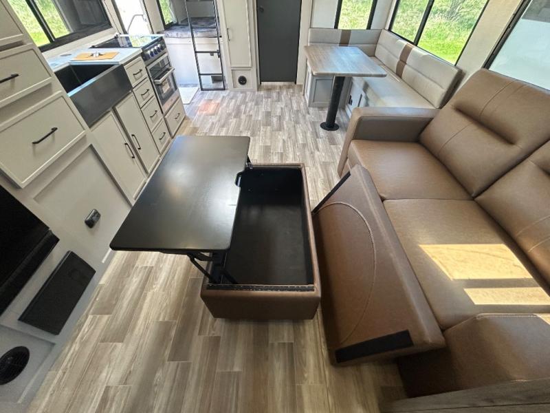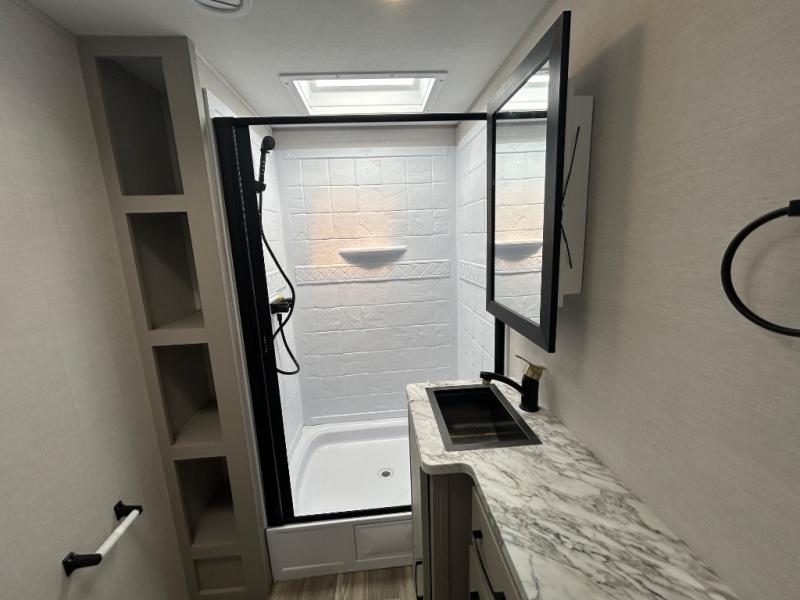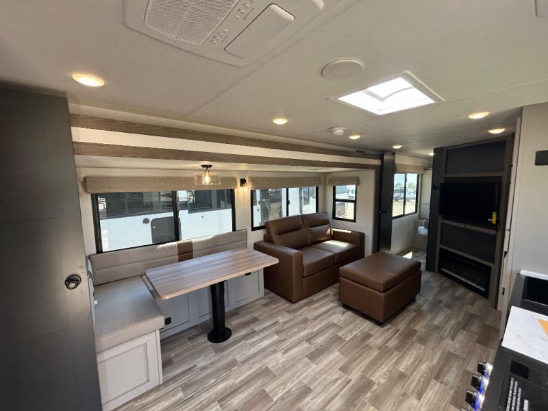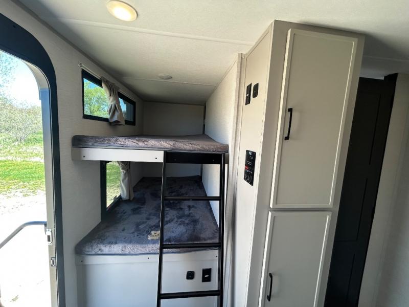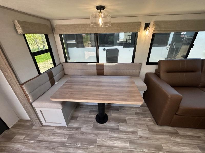 Are you looking to upgrade your RV to a trailer with more space and more features? Look no further than this Vibe! The kids are sure to claim the double-size bunks to themselves, while the adults take the front private bedroom with the queen bed. You will find even more sleeping space on the 5-person dinette and tri-fold sofa within the large slide out. After a day outdoors at the lake, get cleaned up in the full bath that includes a 40" x 30" shower.