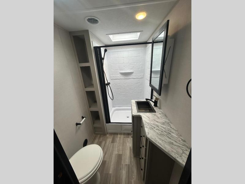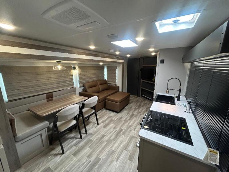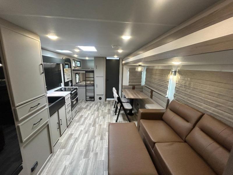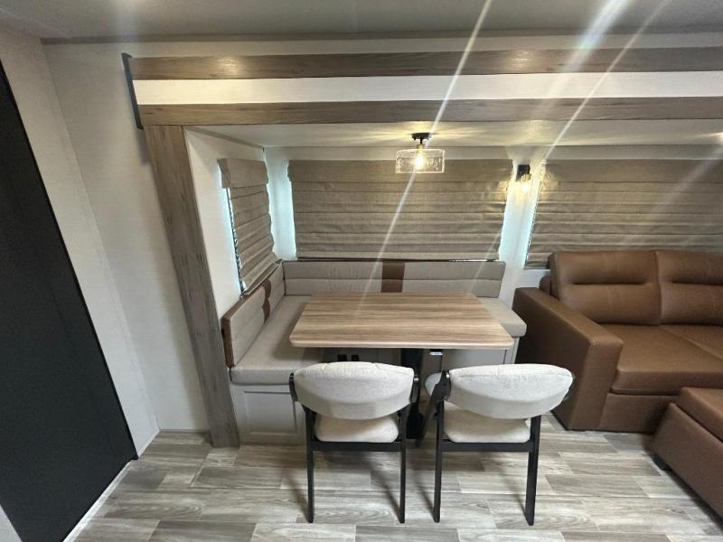 Are you looking to upgrade your RV to a trailer with more space and more features? Look no further than this Vibe! The kids are sure to claim the double-size bunks to themselves, while the adults take the front private bedroom with the queen bed. You will find even more sleeping space on the 5-person dinette and tri-fold sofa within the large slide out. After a day outdoors at the lake, get cleaned up in the full bath that includes a 40" x 30" shower.