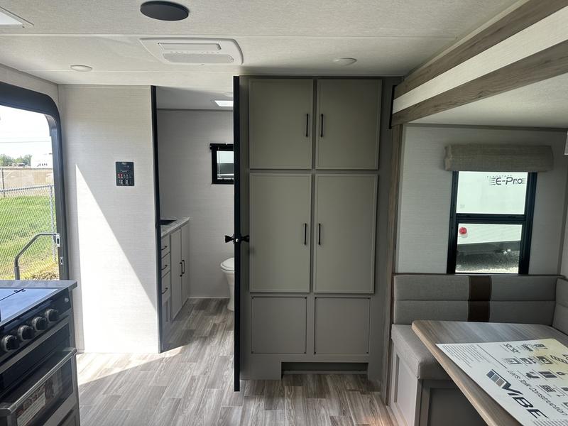 With any Vibe travel trailer by Forest River, you will enjoy comfort at every turn! There is a Norco huck-bolted steel frame, an enclosed underbelly with 12V heating pads, and a PVC roof membrane for added durability. You will also find a universal docking station outside, along with slam latch doors, European style square windows, and an automotive painted front cap. Head inside to enjoy the premium residential-style furniture, decorative window treatments, privacy shades in the living room and bedroom, and many more comforts!