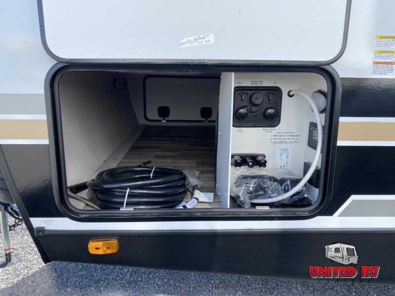Escape to the great outdoors in this Vibe travel trailer. Once you arrive at your campsite, set up the 20' electric awning with LED lights, then grab the fishing poles from the large pass-through storage. You may want to make a quick lunch on the universal outside kitchen before heading out. If the weather isn't cooperating, you can cook on the three burner cooktop or the oven, and there is even a residential refrigerator to hold all your ingredients. The spacious full bath includes a 36" x 30" walk-in shower to clean up every day, and there is a linen closet to store clean towels and necessities.