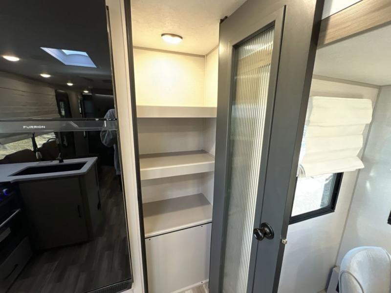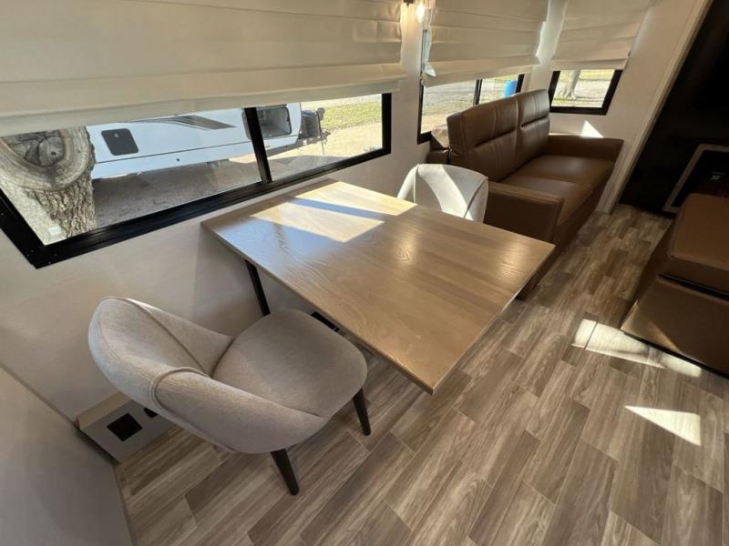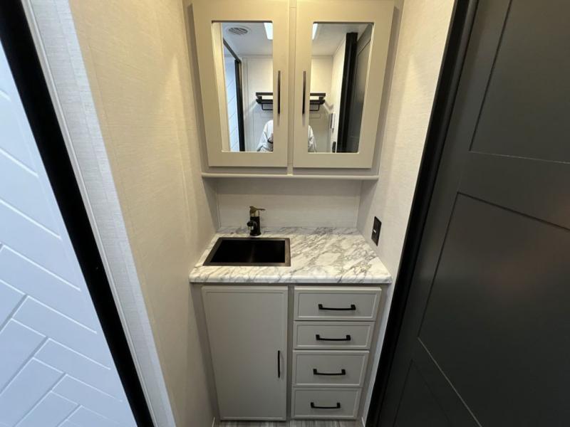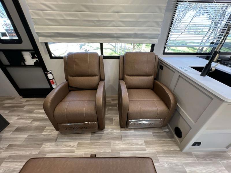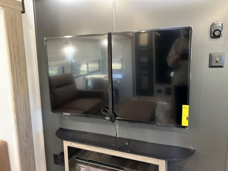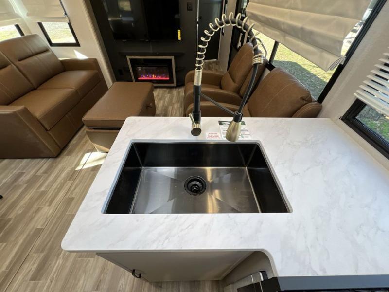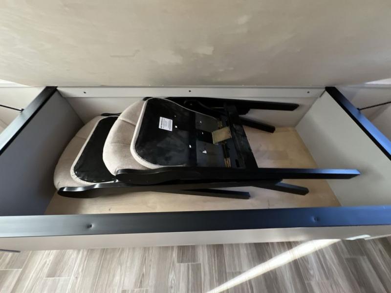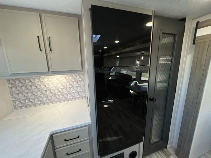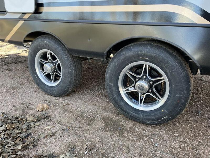 Escape to the great outdoors in this Vibe travel trailer. Once you arrive at your campsite, set up the 20' electric awning with LED lights, then grab the fishing poles from the large pass-through storage. You may want to make a quick lunch on the universal outside kitchen before heading out. If the weather isn't cooperating, you can cook on the three burner cooktop or the oven, and there is even a residential refrigerator to hold all your ingredients. The spacious full bath includes a 36" x 30" walk-in shower to clean up every day, and there is a linen closet to store clean towels and necessities.