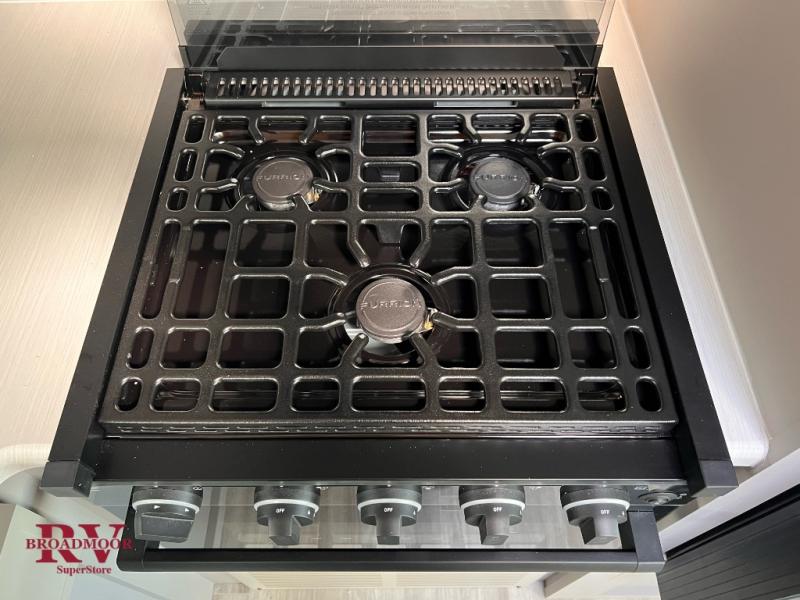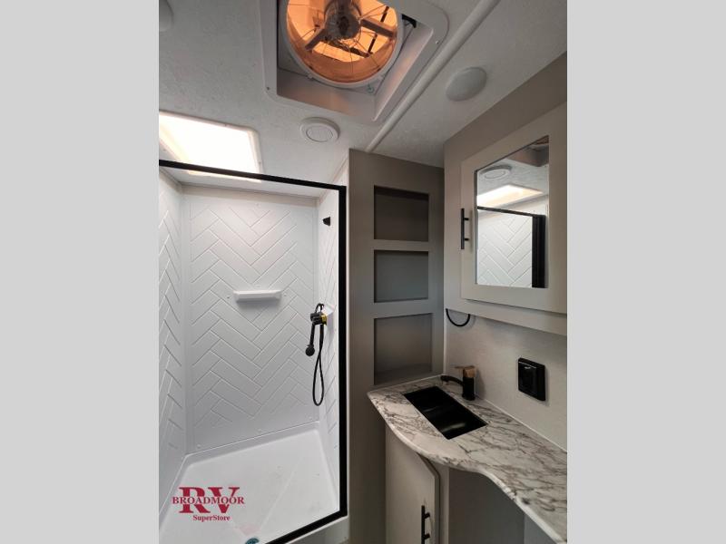 Escape to the great outdoors in this Vibe travel trailer. Once you arrive at your campsite, set up the 20' electric awning with LED lights, then grab the fishing poles from the large pass-through storage. You may want to make a quick lunch on the three burner cooktop before heading out. When you get home, relax on the sleeper sofa or the recliner chairs by the entertainment center with fireplace. The spacious full bath includes a 36" x 30" walk-in shower to clean up every day, and there is a linen closet to store clean towels and necessities.