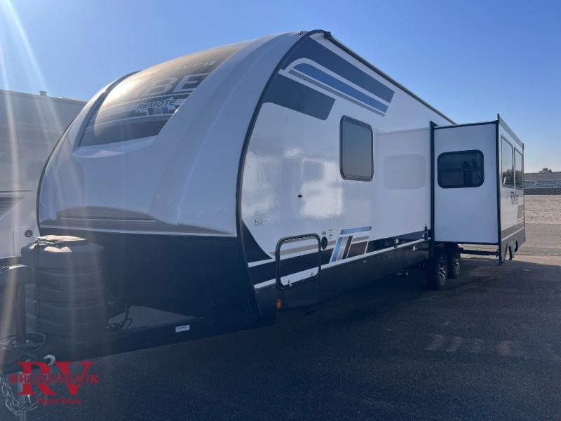 Each Vibe travel trailer by Forest River includes Hyper Lyte construction and a durable laminated "Aluma Frame" for years of use. The heated and enclosed underbelly allows you to extend your camping season, and the walk-on truss roof with XTRM PVC roofing will be easy to keep clean. Inside, you'll enjoy the custom built cabinetry, solid surface thermofoil wrapped kitchen countertops, and ultra bright LED lighting throughout. These models also include cable and satellite prep and a digital TV antenna with a booster so you can stay connected to the outside world if you choose. Make the easy choice and choose a Vibe travel trailer today!