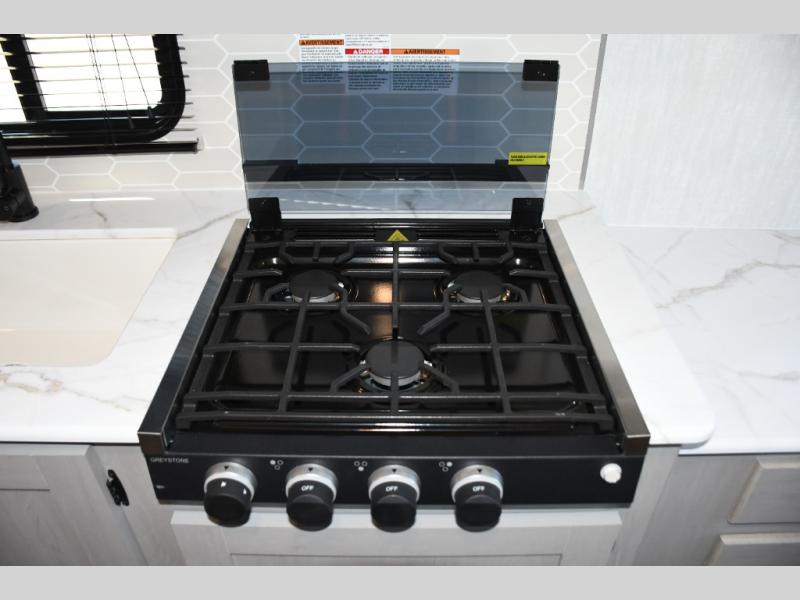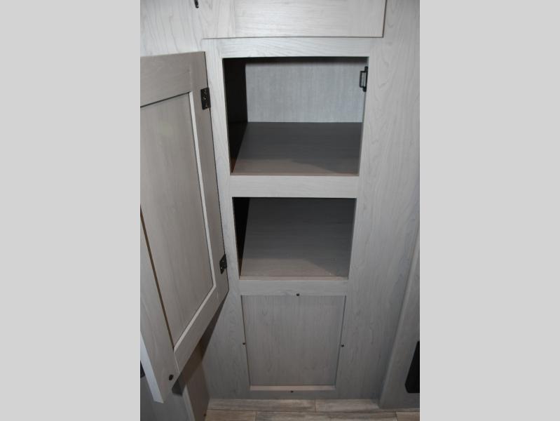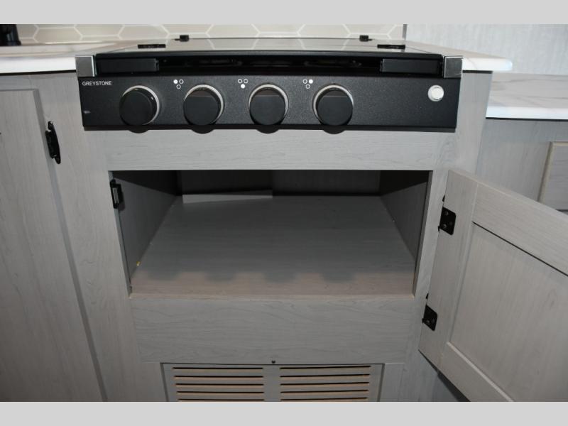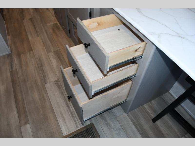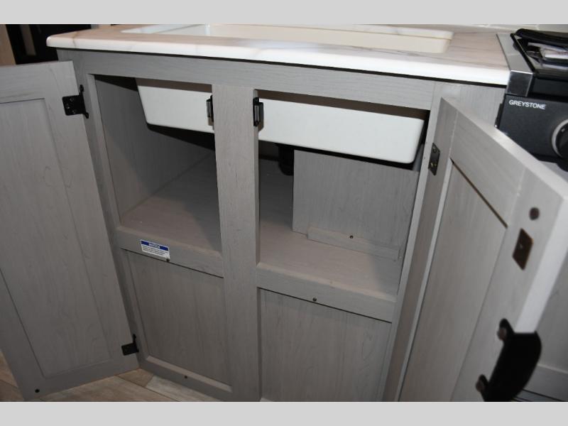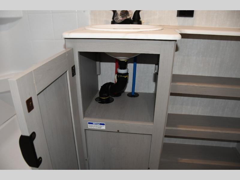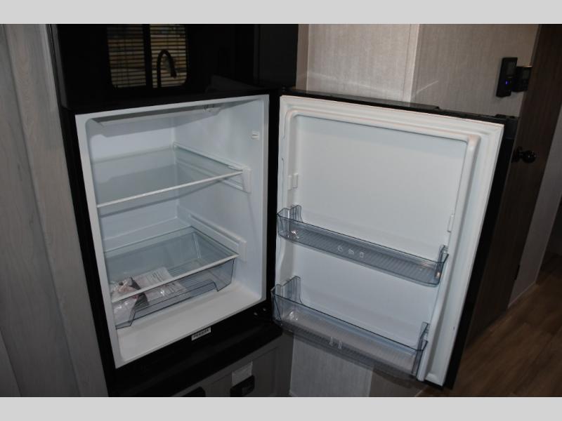 Step inside and you’ll notice the carefully designed interior, featuring a spacious mid-kitchen with modern appliances and plenty of storage, a comfortable U-shaped dinette perfect for meals or game nights, and a private front bedroom for restful nights. Every inch of this travel trailer is crafted to provide convenience and style, from durable flooring and sleek cabinetry to a modern bathroom that makes life on the road easy.