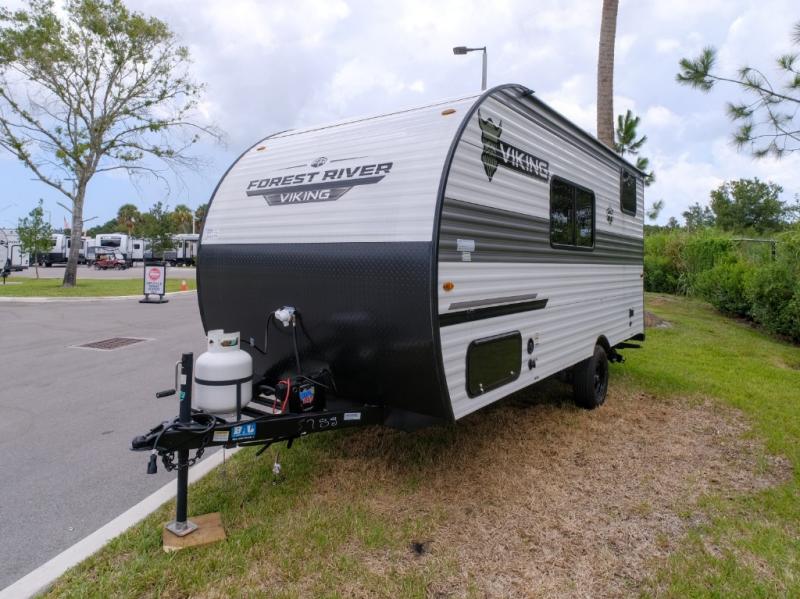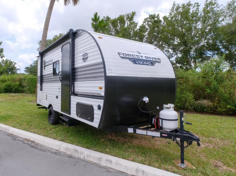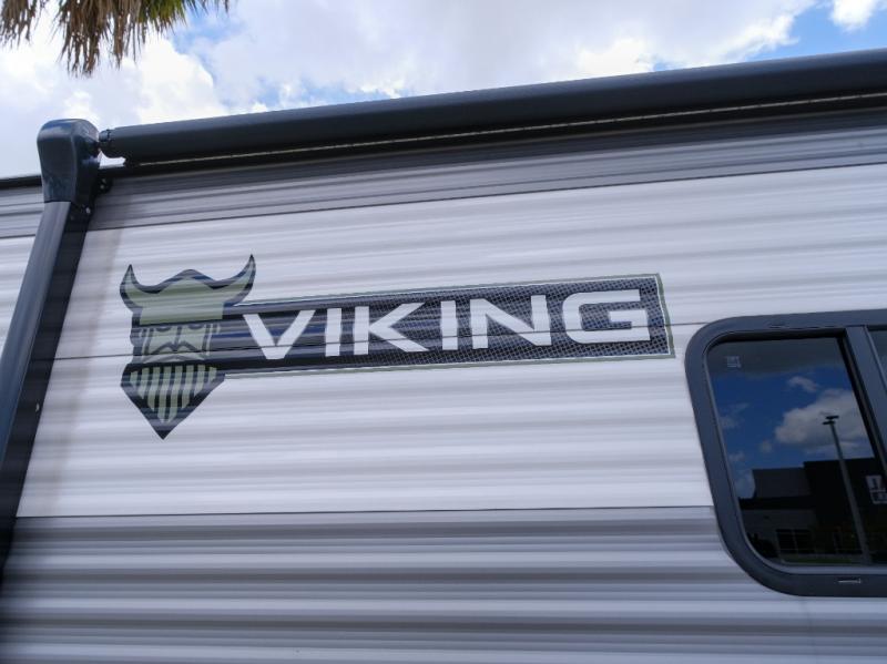 The budget-friendly Forest River Viking 3K Series travel trailers are for the newbie or seasoned RV user. Each model is constructed with a BAL NXG frame with Huck bolt assembly and front diamond plating so that your trailer will last. Towing and setup is made hassle-free with self-adjusting electric brakes, Easy Lube axles, and two rear stabilizing jacks. The Viking 3K Series travel trailers include a two burner cooktop, sink cover(s), and a foot flush toilet for added convenience. You will also find USB charging ports to keep your electronics charged, plus back up camera and solar prep for the option to add these features.