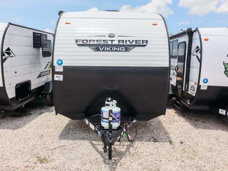 The budget-friendly Forest River Viking 3K Series travel trailers are for the newbie or seasoned RV user. Each model is constructed with a BAL NXG frame with Huck bolt assembly and front diamond plating so that your trailer will last. Towing and setup is made hassle-free with self-adjusting electric brakes, Easy Lube axles, and two rear stabilizing jacks. The Viking 3K Series travel trailers include a two burner cooktop, sink cover(s), and a foot flush toilet for added convenience. You will also find USB charging ports to keep your electronics charged, plus back up camera and solar prep for the option to add these features.