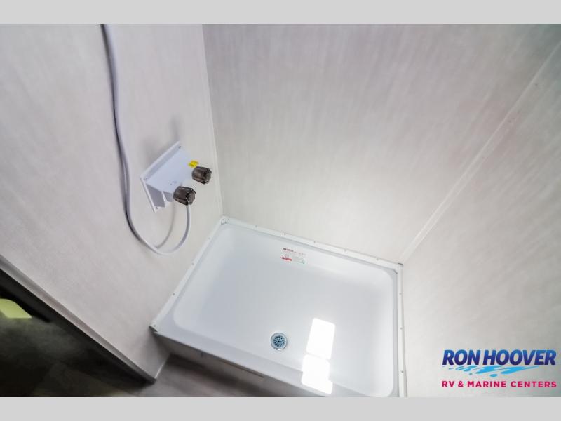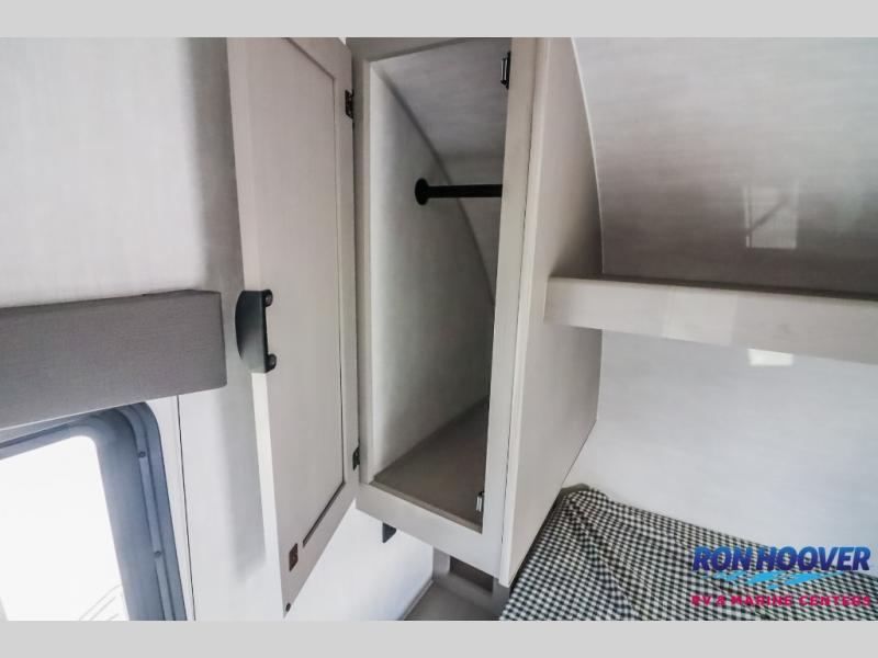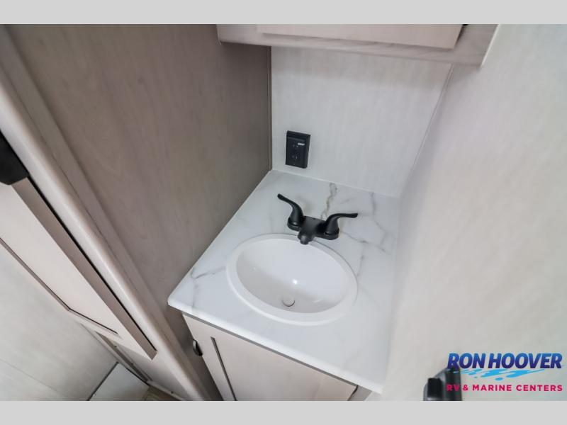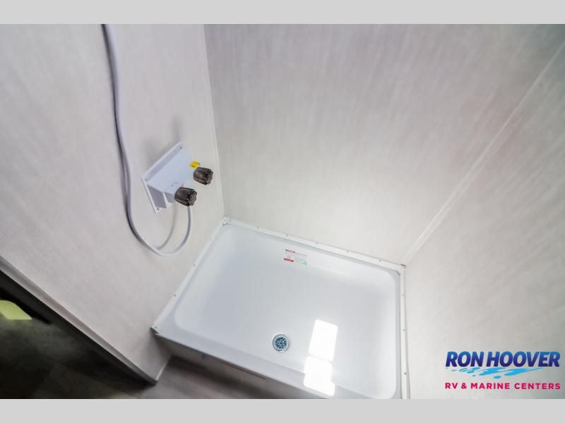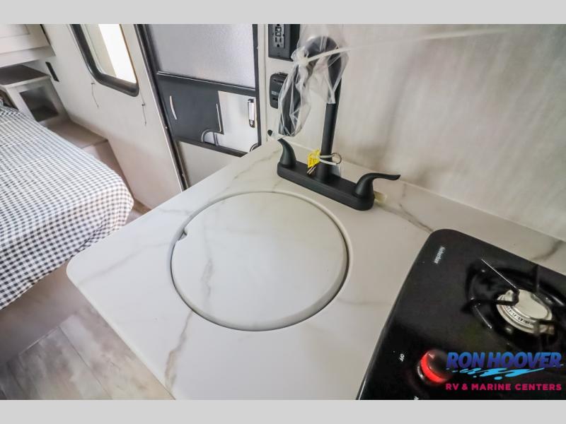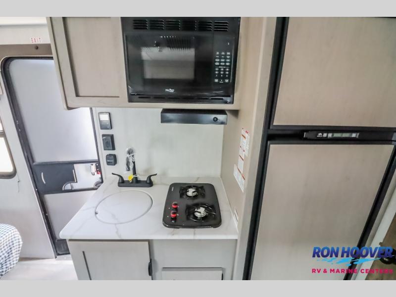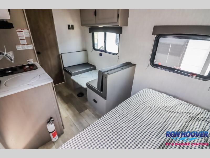 This Viking 3K Series is a cozy couples trailer or one perfect for a small family of three or four featuring a queen bed up front with overhead storage. The booth dinette also features additional storage and can be converted to sleeping space for one or two more depending on size. You will have an induction cooktop and sink with cover to provide a bit more counter space when the sink is not being used. A rear full bath including a 24" x 36" shower, toilet, and vanity with a sink, as well as an overhead medicine cabinet for your toothbrushes and other toiletries. On the outside, a 10' power patio awning will provide added protection from the sun and rain giving you added living space outside to enjoy with camp chairs. And, a front pass-through compartment for your outdoor camping gear, plus so much more!