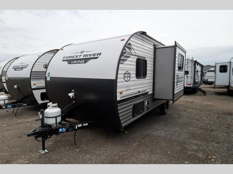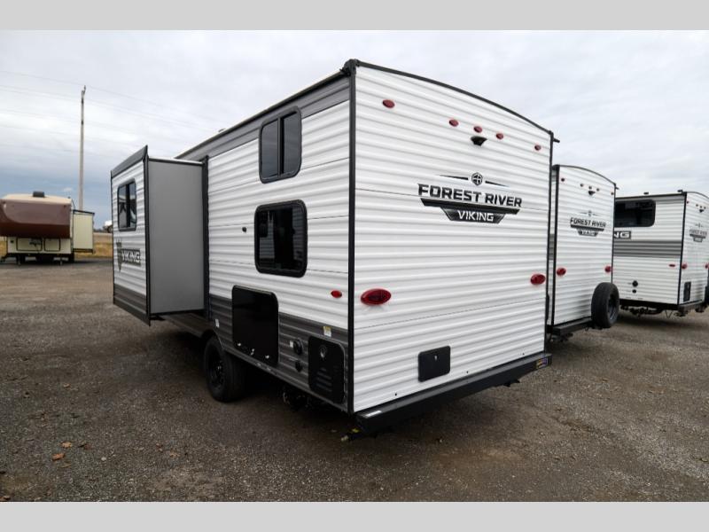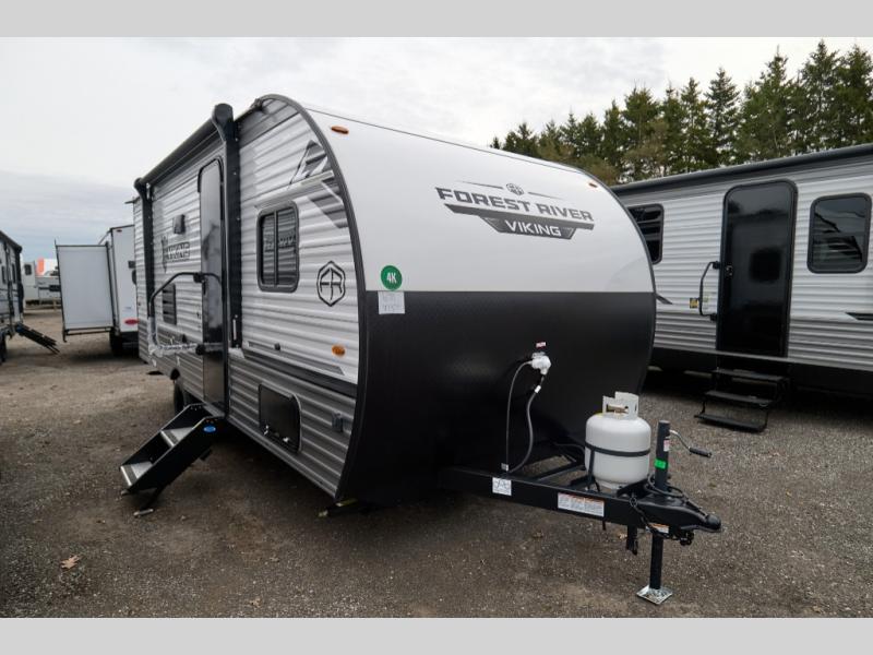 With any Forest River Viking 4K Series travel trailer, you can experience affordable camping with your family with the same comforts and quality found in bigger trailers. Each is built on an 8' wide frame with aerodynamic engineered front profile for easy towing. There are four stabilizing jacks to make camp setup easy while keeping your trailer secure while in camp, plus electric brakes for a safer tow. Inside, there is kitchen backsplash, a 12V refrigerator, sink covers for added counter space, and a foot flush toilet, plus more. Choose an easy to tow Viking 4K Series and start enjoying the great outdoors without breaking your budget!