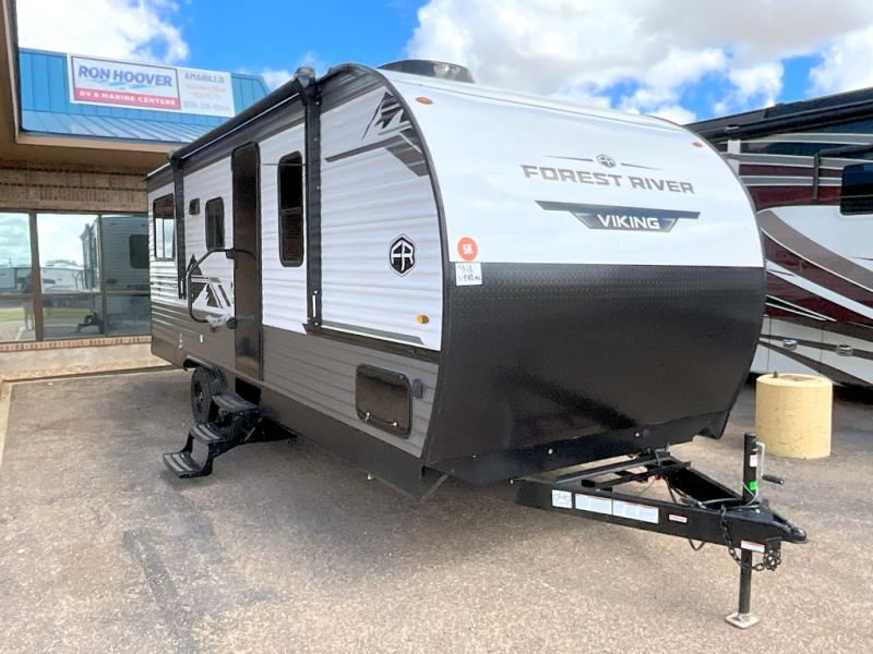 With any Forest River Viking 5K Series travel trailer, you can experience affordable camping with your family with the same comforts and quality as the bigger trailers. Each is built on a BAL NXG frame, with extended height diamond plate rock guard for added protection and a seamless one-piece TPO roof membrane. There are USB charging ports to keep your electronics charged up, and you'll love the look of the kitchen backsplash inside as well. Head outside to find a power awning with an LED light strip and adjustable legs, back-up camera prep, four rear stabilizing jacks, and an outside shower so you can wash off hiking gear.