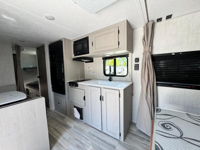 With any Forest River Viking 5K Series travel trailer, you can experience affordable camping with your family with the same comforts and quality as the bigger trailers. Each is built on a BAL NXG frame, with extended height diamond plate rock guard for added protection and a seamless one-piece TPO roof membrane. There are USB charging ports to keep your electronics charged up, and you'll love the look of the kitchen backsplash inside as well. Head outside to find a power awning with an LED light strip and adjustable legs, back-up camera prep, four rear stabilizing jacks, and an outside shower so you can wash off hiking gear.