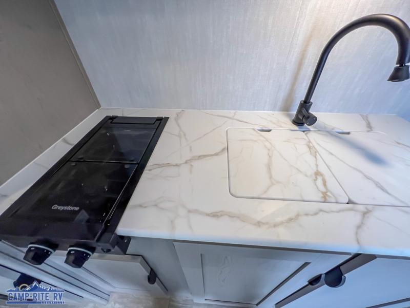 With any Forest River Viking 5K Series travel trailer, you can experience affordable camping with your family with the same comforts and quality as the bigger trailers. Each is built on a BAL NXG frame, with extended height diamond plate rock guard for added protection and a seamless one-piece TPO roof membrane. There are USB charging ports to keep your electronics charged up, and you'll love the look of the kitchen backsplash inside as well. Head outside to find a power awning with an LED light strip and adjustable legs, back-up camera prep, four rear stabilizing jacks, and an outside shower so you can wash off hiking gear.