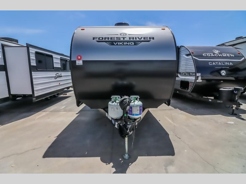 With any Forest River Viking 6K Series travel trailer, you can experience affordable camping with your family with the same comforts and quality as the bigger trailers. Each is built on a BAL NXG frame with supreme powder coating, and HUCK bolt assembly providing a more durable longer lasting frame and better rust and corrosion protection. The power tongue jack will help with effortless unhitching and faster setup. The interior offers drop edge thermofoil countertops for low maintenance and easy cleaning, a foot flush toilet, plus USB charging ports for your phone or tablet. Available options feature a fireplace with a remote, a solar package and more!