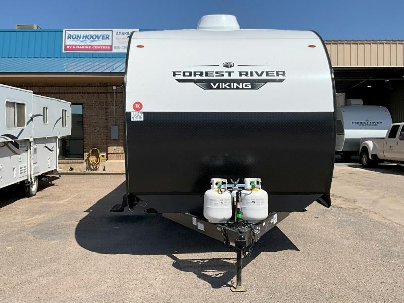 With any Forest River Viking 6K Series travel trailer, you can experience affordable camping with your family with the same comforts and quality as the bigger trailers. Each is built on a BAL NXG frame with supreme powder coating, and features an 8' wide frame with an aerodynamic engineered front profile for easy towing. The interior offers stylish kitchen backsplash, upgraded cabinets, a foot flush toilet, plus USB charging ports for your phone or tablet. Available options feature a power tongue jack, a fireplace with a remote, a solar package and more!
