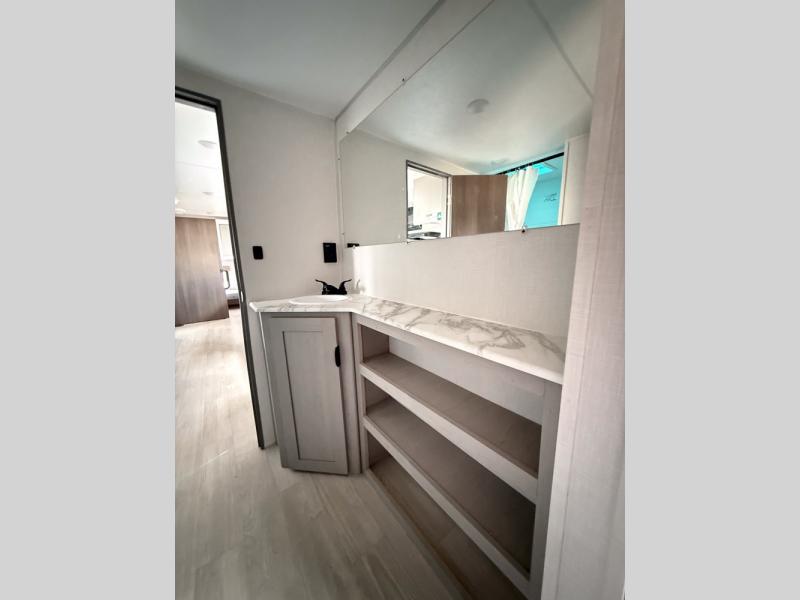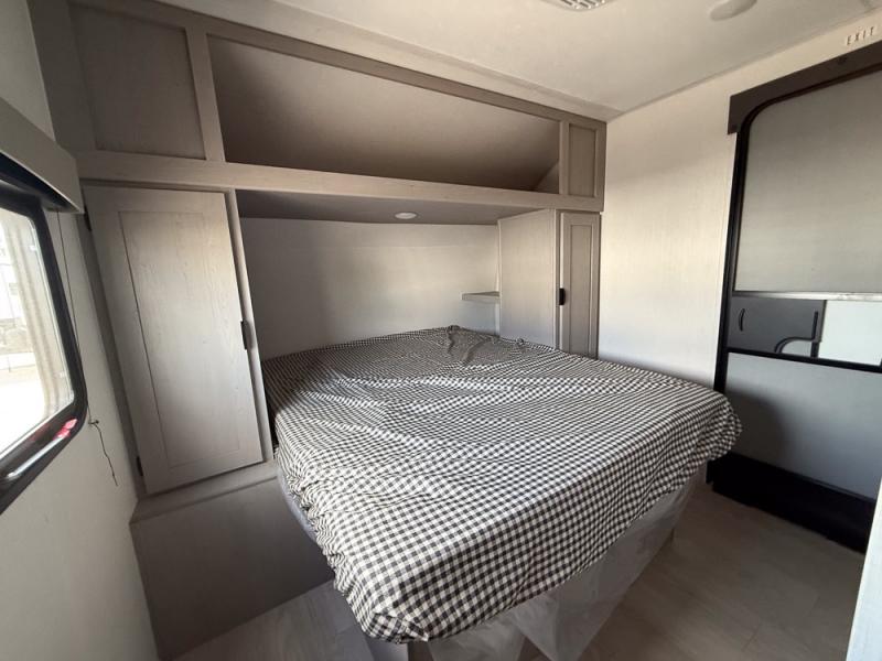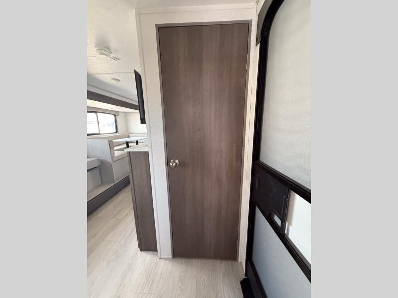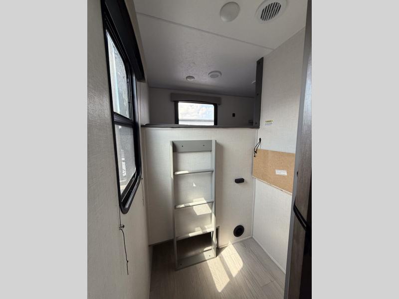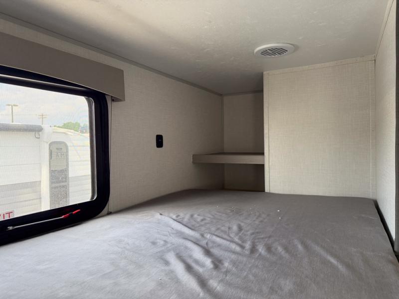 This masterfully designed bunkhouse is the perfect bunkhouse. This bunkhouse actually has separate bunkbeds! We love the space and comfort this RV gives you and keeps the arguing to a minimal. ??