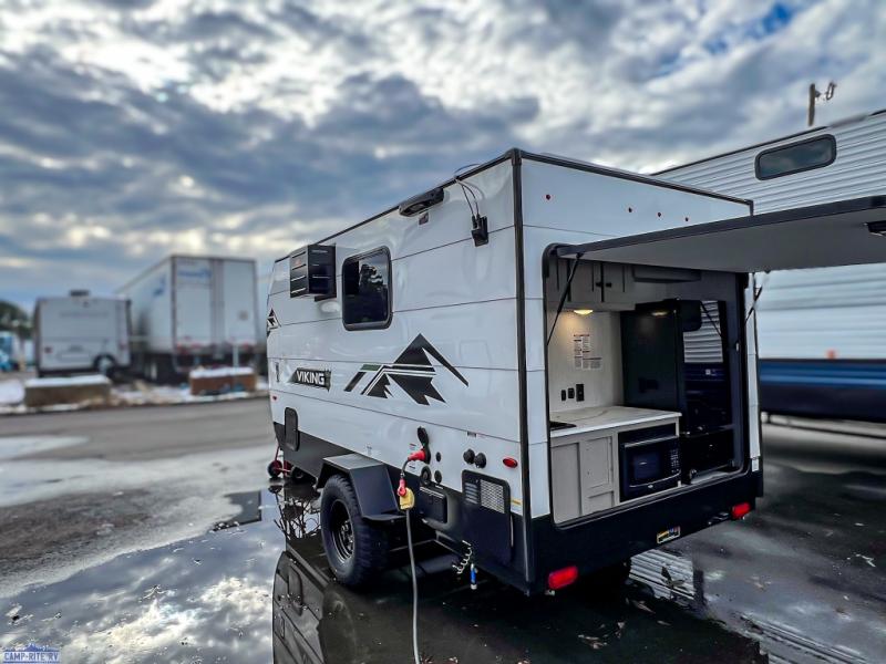 These Forest River Viking ROK travel trailers allow you to camp anywhere you want, even off the beaten path a bit. Each model features electric brakes, easy lube axles, and 15" off-road heavy duty tires. There are frame-mounted stabilizer jacks to help keep your unit secure, and the outside shower with hot/cold water will come in handy when rinsing off hiking gear. A 5K BTU A/C unit and 20K BTU propane furnace will keep you comfortable as you camp, and there are 12V outlets along with 110V outlets to keep your electronics charged. An optional roof top tent can be added if you're needing additional sleeping space, and if you choose the optional Solar Package with a 200W panel and 30A solar controller, you can enjoy off-grid capabilities!