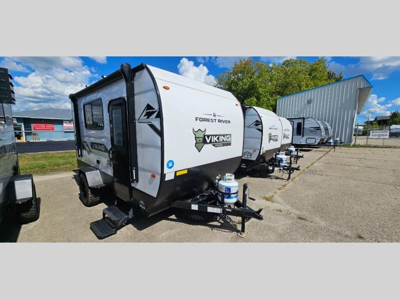 These Forest River Viking ROK travel trailers allow you to camp anywhere you want, even off the beaten path a bit. Each model features electric brakes, easy lube axles, and 15" off-road heavy duty tires. There are frame-mounted stabilizer jacks to help keep your unit secure, and the outside shower with hot/cold water will come in handy when rinsing off hiking gear. A 5K BTU A/C unit and 20K BTU propane furnace will keep you comfortable as you camp, and there are 12V outlets along with 110V outlets to keep your electronics charged. An optional roof top tent can be added if you're needing additional sleeping space, and if you choose the optional Solar Package with a 200W panel and 30A solar controller, you can enjoy off-grid capabilities!
