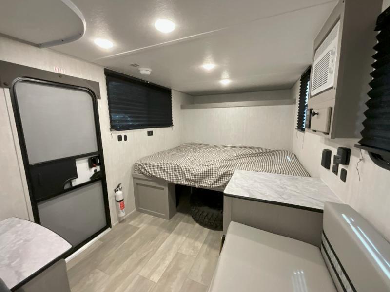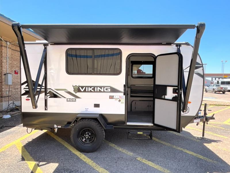 These Forest River Viking ROK travel trailers allow you to camp anywhere you want, even off the beaten path a bit. Each model features electric brakes, easy lube axles, and 15" off-road heavy duty tires. There are frame-mounted stabilizer jacks to help keep your unit secure, and the outside shower with hot/cold water will come in handy when rinsing off hiking gear. A 5K BTU A/C unit and 20K BTU propane furnace will keep you comfortable as you camp, and there are 12V outlets along with 110V outlets to keep your electronics charged. An optional roof top tent can be added if you're needing additional sleeping space, and if you choose the optional Solar Package with a 200W panel and 30A solar controller, you can enjoy off-grid capabilities!