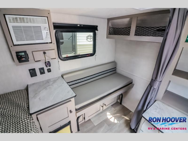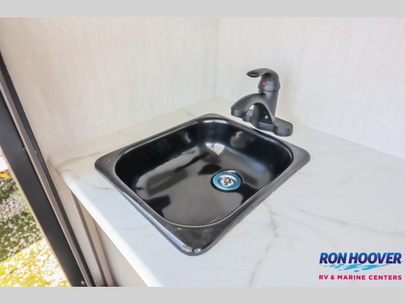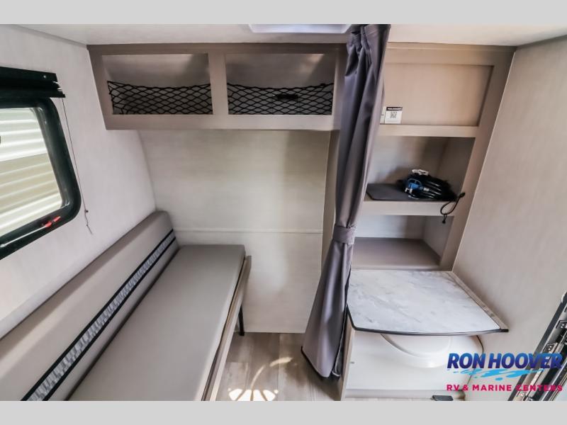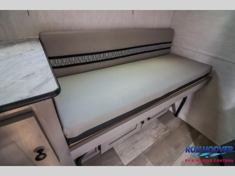When you want to explore, choose this travel trailer for your basic off-road adventure needs and a bit more by offering you a 54" X 74" flip-up bed with storage beneath, and gaucho seating that pulls out into a bed for an additional camper at night. There is front and rear overhead cabinetry for storage, and a cassette toilet for added convenience especially at night. A rear hatch camp kitchen provides a place for you to create meals and snacks while you explore. There is a slide-out griddle and grill combo cooktop, a 3.3 cu. ft. 12-volt refrigerator for your cold items, a single sink, and two burner cooktop, plus a microwave oven. A 9' power awning creates a bit of added outdoor living space where you can set up your camp chairs. You can also add an optional roof-top tent for additional sleeping.