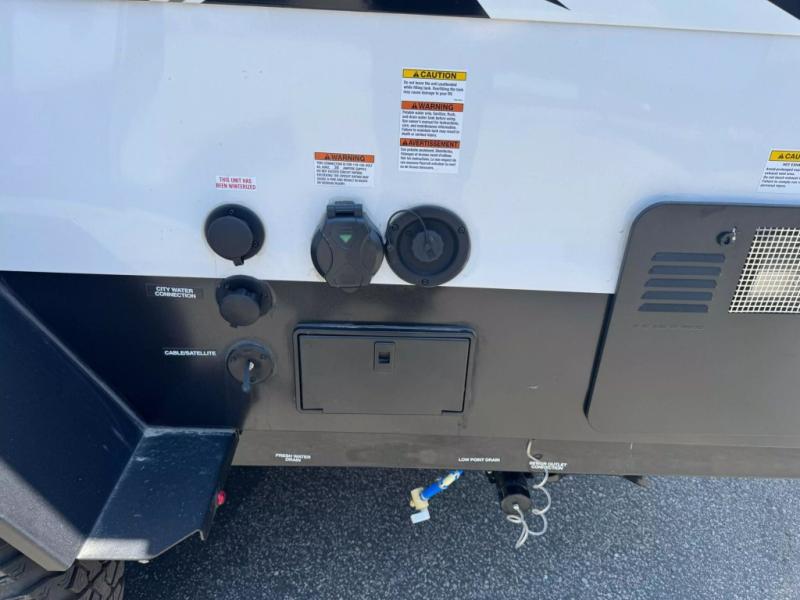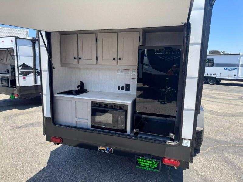 When you want to explore, choose this travel trailer for your basic off-road adventure needs and a bit more by offering you a 54" X 74" flip-up bed with storage beneath. There is front and rear cabinet storage, and a cassette toilet for added convenience especially at night. A rear hatch camp kitchen provides a place for you to create meals and snacks while you explore. There is a slide-out griddle and grill combo cooktop, a 3.3 cu. ft. 12-volt refrigerator for your cold items, a single sink, and two burner cooktop, plus a microwave oven. A 9' power awning creates a bit of added outdoor living space where you can set up your camp chairs. You can also add an optional roof-top tent for additional sleeping.