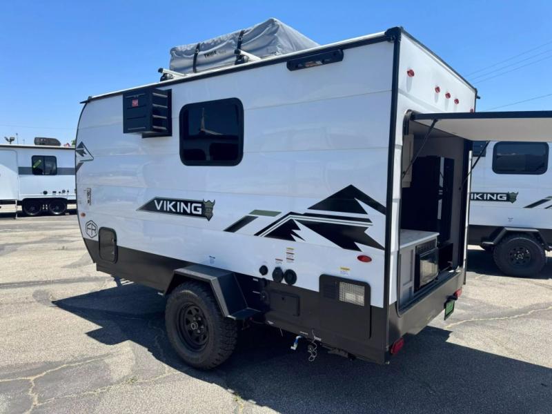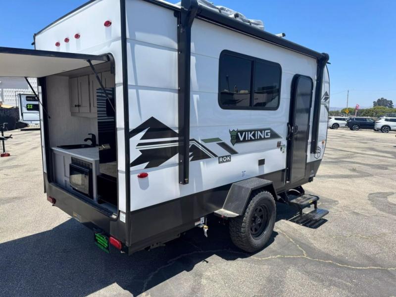 These Viking ROK travel trailers allow you to camp anywhere you want, even off the beaten path a bit. Each model features electric brakes, easy lube axles, and 15" off-road heavy duty tires. There are frame-mounted stabilizer jacks to help keep your unit secure, and the outside shower with hot/cold water will come in handy when rinsing off hiking gear. A 5K BTU A/C unit and 20K BTU propane furnace will keep you comfortable as you camp, and there are 12V outlets along with 110V outlets to keep your electronics charged. An optional roof top tent can be added if you're needing additional sleeping space, and if you choose the optional Solar Package with a 200W panel and 30A solar controller, you can enjoy off-grid capabilities!