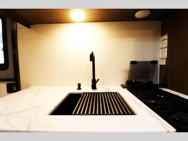- Seamless faux marble countertops and oversized cabinets