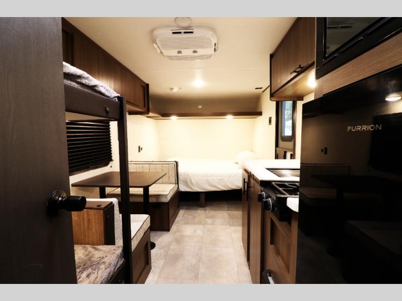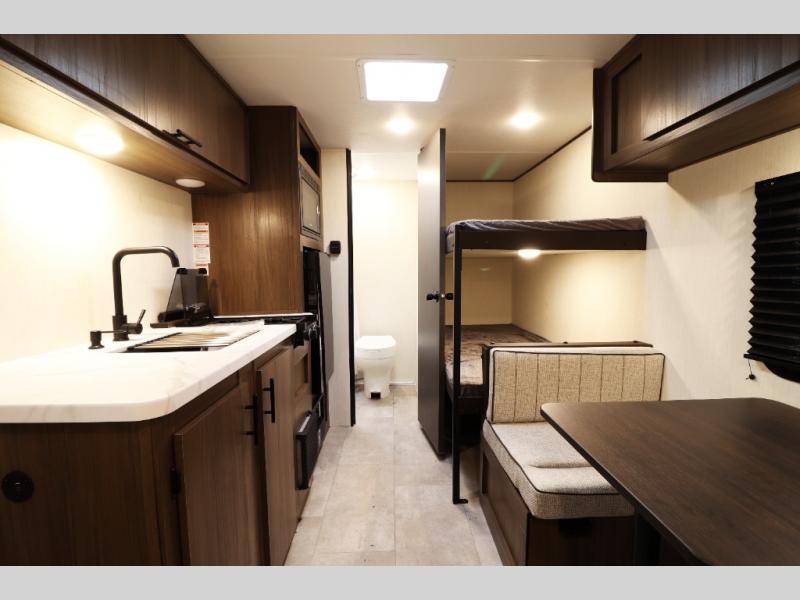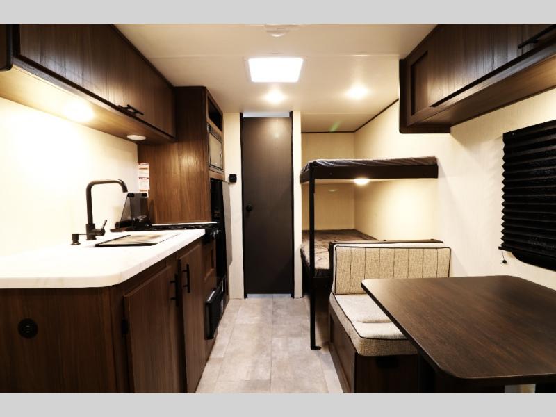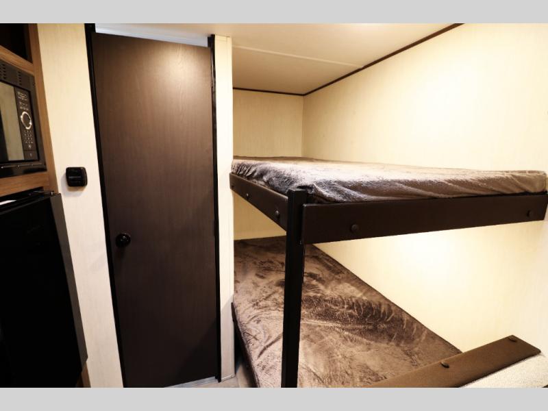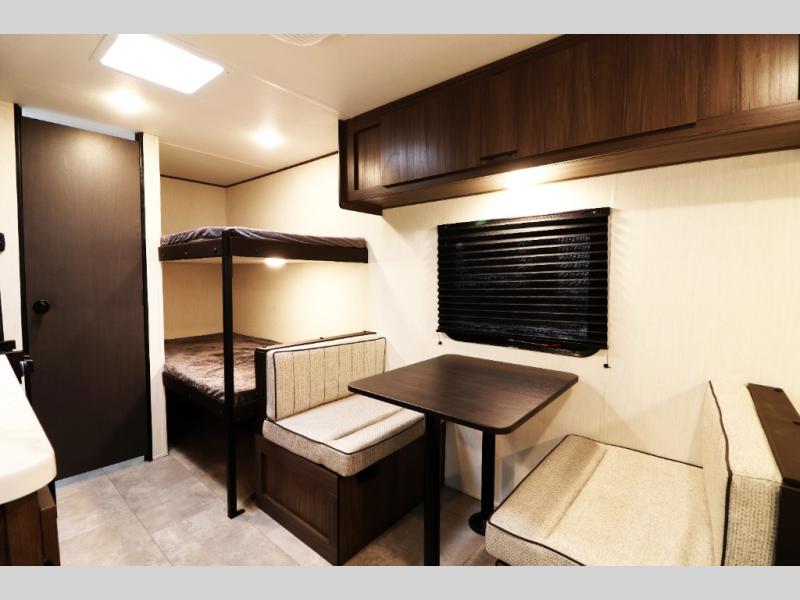 - Plush bunk beds, deluxe sleeper dinette, and massive underbed storage