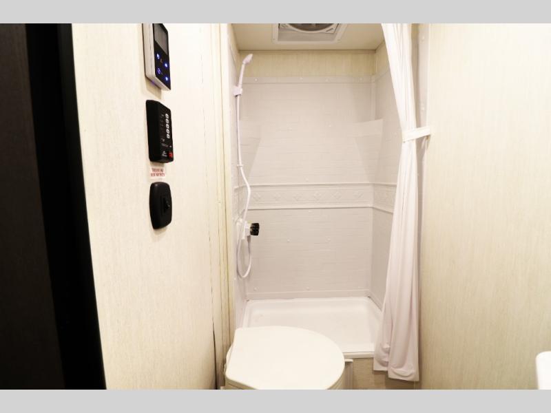 Spa-Style Bath – Radius shower with skylight, foot-flush toilet, linen closet, bathroom fan, and easy-to-use tankless water heater control.