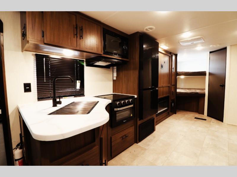 Spacious, lightweight, and family-friendly—enjoy a queen bed, bunkhouse, full kitchen, modern bath, solar prep, outdoor kitchen, and tons of storage in this 2025 Forest River Westbrook 27CC!