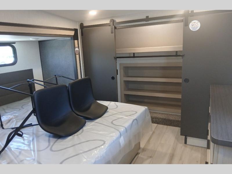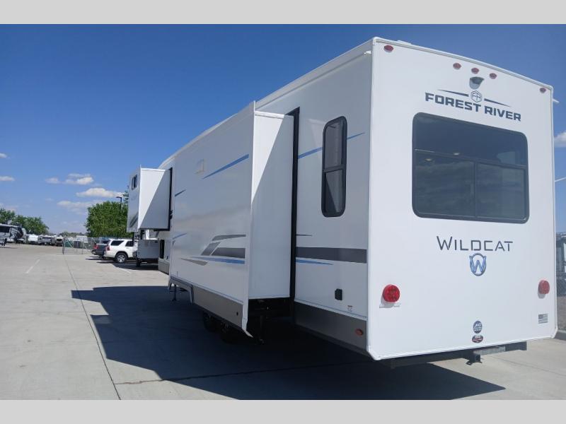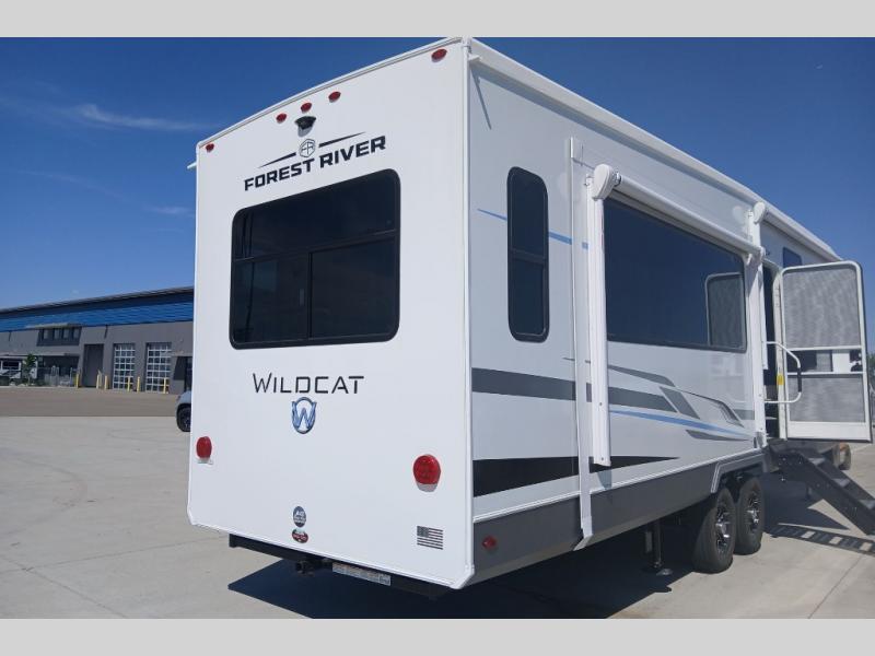 With any Wildcat fifth wheel by Forest River you will enjoy affordable luxury at every turn. These models are constructed with residential fiberglass insulation in the roof and floor, a sectioned ABS plastic underbelly armor, and a vacuum bonded, welded aluminum structure for added strength and durability. You will also find seamless roto-cast holding tanks, an outdoor shower, and 4-point auto leveling for quick and easy setup. Each model includes a best-in-class, high-efficiency 35,000 BTU furnace, along with a 18,000 BTU ducted A/C, with second and third A/C prep, plus an on-demand tankless water heater for added convenience. There are carpet-free living spaces, residential backsplash, motion lighting throughout, and many more comforts!