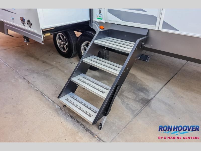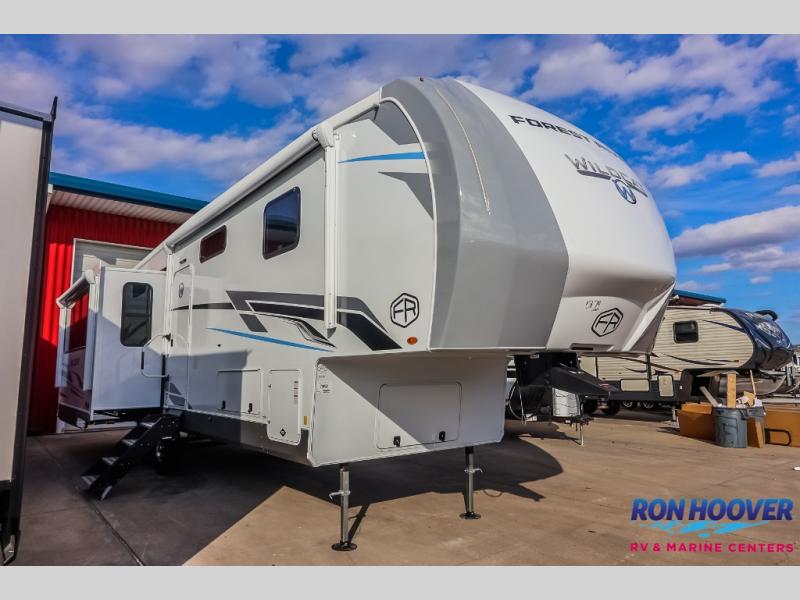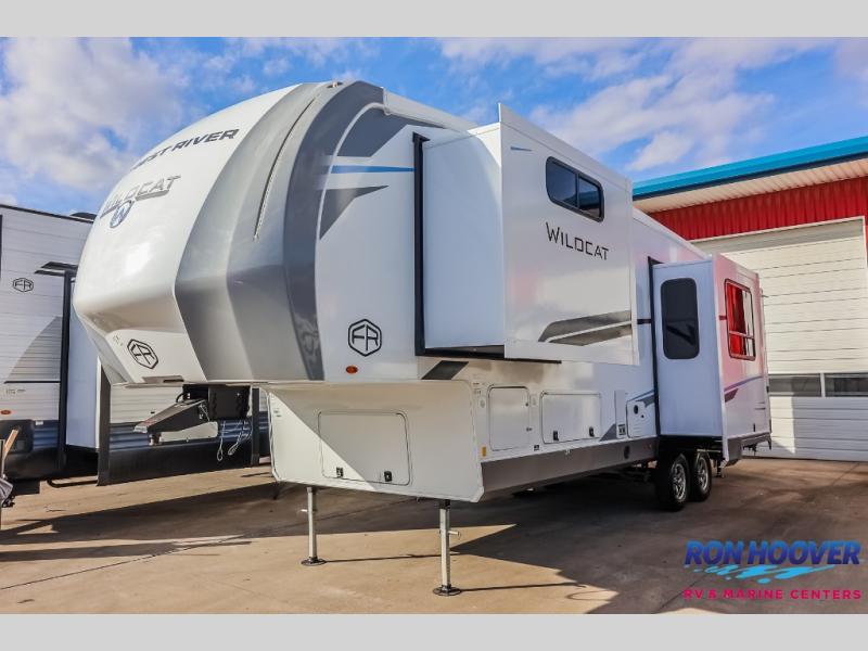 With any Wildcat fifth wheel by Forest River you will enjoy affordable luxury at every turn. These models are constructed with residential fiberglass insulation in the roof and floor, a sectioned ABS plastic underbelly armor, and a vacuum bonded, welded aluminum structure for added strength and durability. You will also find seamless roto-cast holding tanks, an outdoor shower, and 4-point auto leveling for quick and easy setup. Each model includes a best-in-class, high-efficiency 35,000 BTU furnace, along with a 18,000 BTU ducted A/C, with second and third A/C prep, plus an on-demand tankless water heater for added convenience. There are carpet-free living spaces, residential backsplash, motion lighting throughout, and many more comforts!