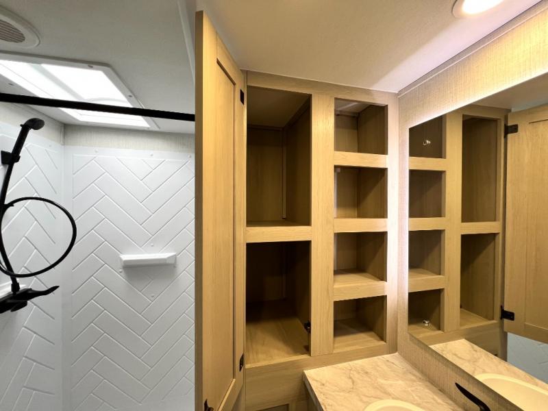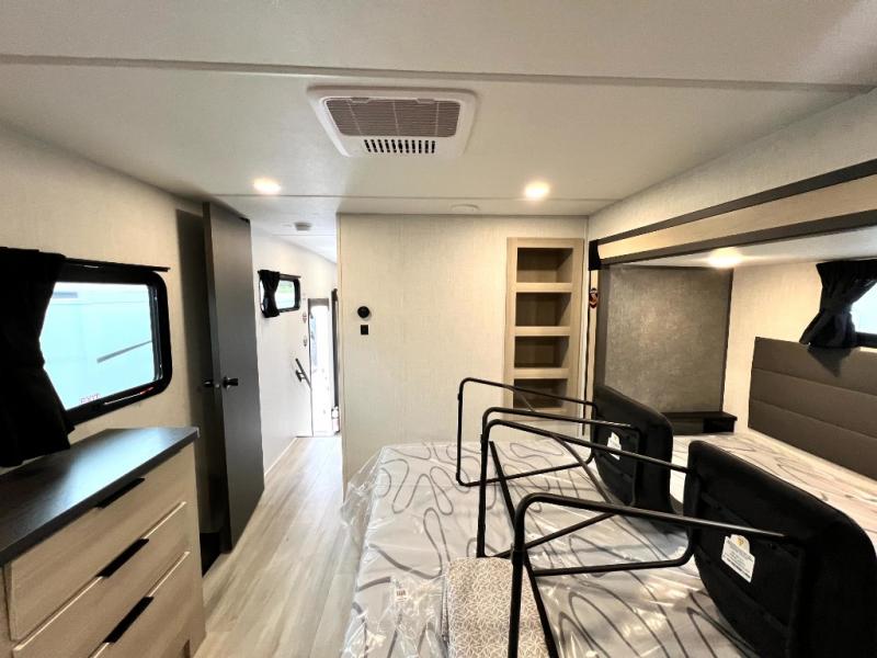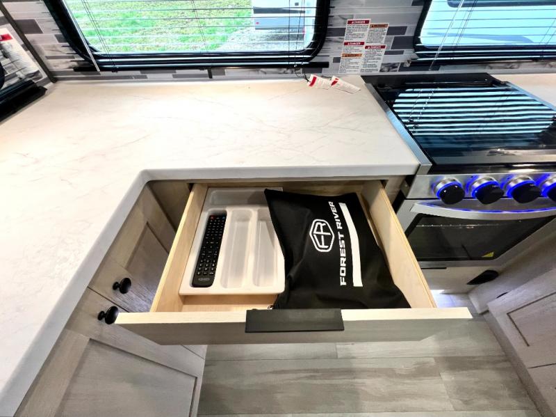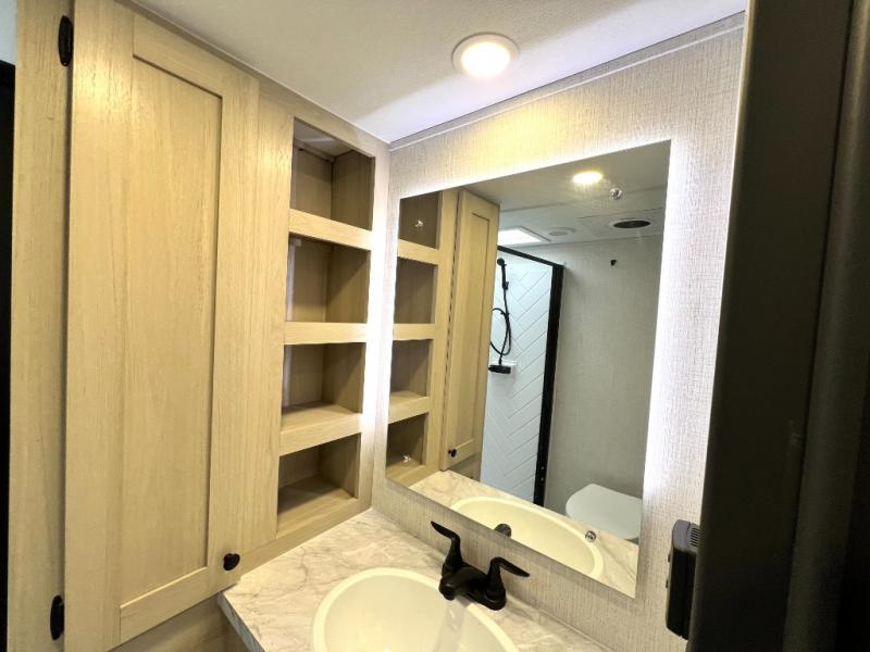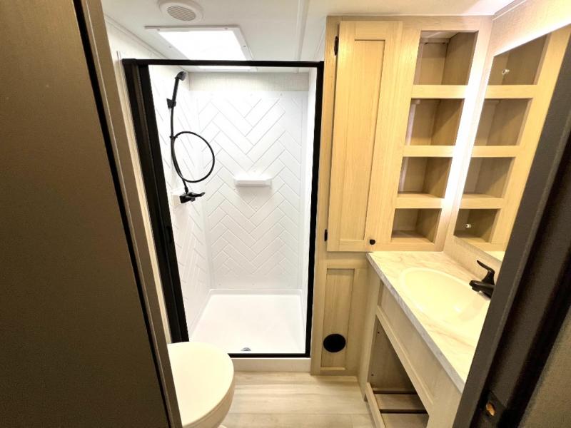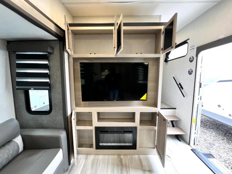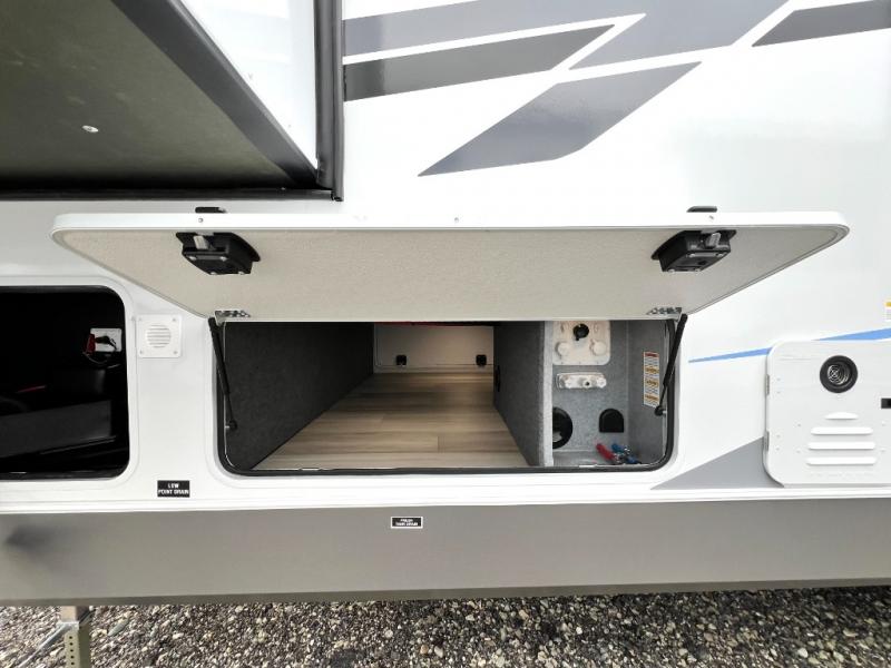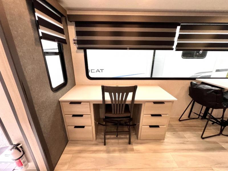 With any Wildcat fifth wheel by Forest River you will enjoy affordable luxury at every turn. These models are constructed with residential fiberglass insulation in the roof and floor, a sectioned ABS plastic underbelly armor, and a vacuum bonded, welded aluminum structure for added strength and durability. You will also find seamless roto-cast holding tanks, an outdoor shower, and 4-point auto leveling for quick and easy setup. Each model includes a best-in-class, high-efficiency 35,000 BTU furnace, along with a 18,000 BTU ducted A/C, with second and third A/C prep, plus an on-demand tankless water heater for added convenience. There are carpet-free living spaces, residential backsplash, motion lighting throughout, and many more comforts!