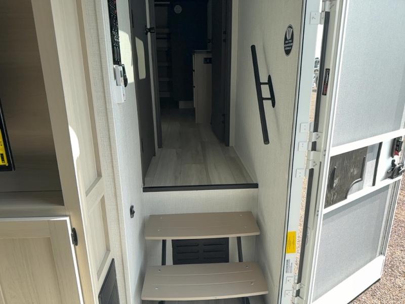With any Wildcat fifth wheel by Forest River you will enjoy affordable luxury at every turn. These models are constructed with residential fiberglass insulation in the roof and floor, a sectioned ABS plastic underbelly armor, and a vacuum bonded, welded aluminum structure for added strength and durability. You will also find seamless roto-cast holding tanks, an outdoor shower, and 4-point auto leveling for quick and easy setup. Each model includes a best-in-class, high-efficiency 35,000 BTU furnace, along with a 18,000 BTU ducted A/C, with second and third A/C prep, plus an on-demand tankless water heater for added convenience. There are carpet-free living spaces, residential backsplash, motion lighting throughout, and many more comforts!