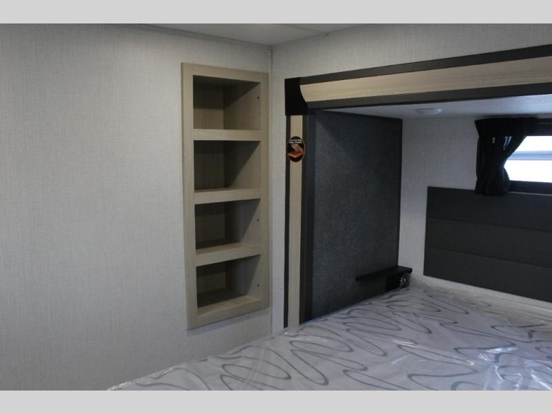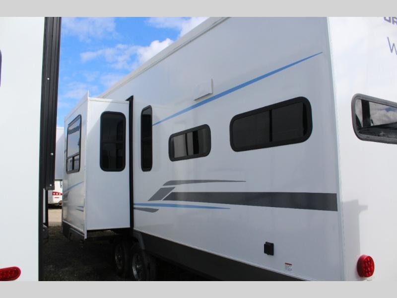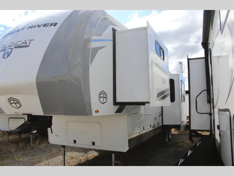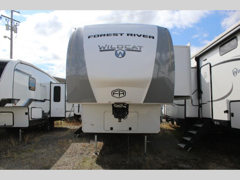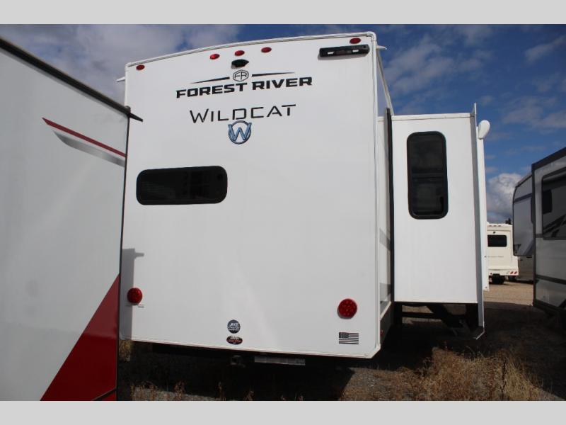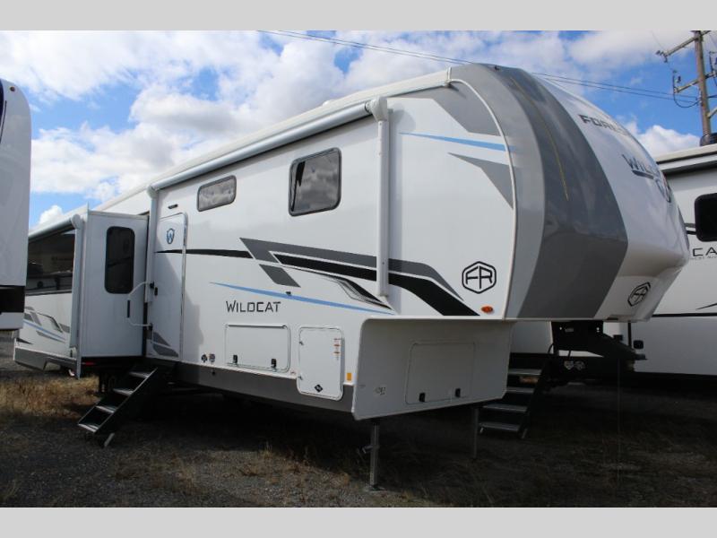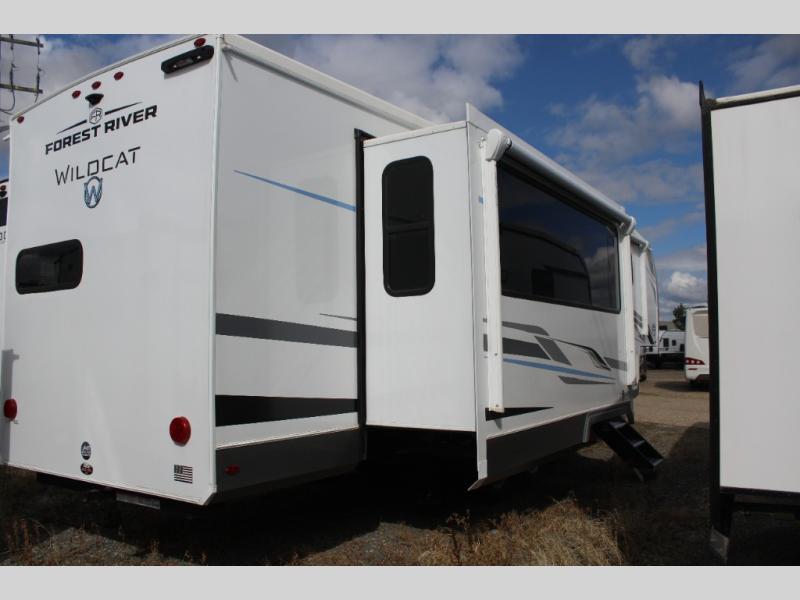 With any Wildcat fifth wheel by Forest River you will enjoy affordable luxury at every turn. These models are constructed with residential fiberglass insulation in the roof and floor, a sectioned ABS plastic underbelly armor, and a vacuum bonded, welded aluminum structure for added strength and durability. You will also find seamless roto-cast holding tanks, an outdoor shower, and 4-point auto leveling for quick and easy setup. Each model includes a best-in-class, high-efficiency 35,000 BTU furnace, along with a 18,000 BTU ducted A/C, with second and third A/C prep, plus an on-demand tankless water heater for added convenience. There are carpet-free living spaces, residential backsplash, motion lighting throughout, and many more comforts!