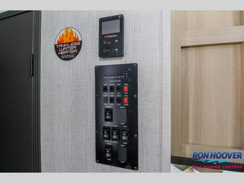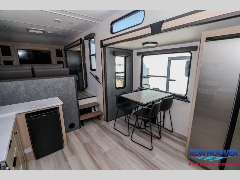 With any Wildcat fifth wheel by Forest River you will enjoy affordable luxury at every turn. These models are constructed with residential fiberglass insulation in the roof and floor, a sectioned ABS plastic underbelly armor, and a vacuum bonded, welded aluminum structure for added strength and durability. You will also find seamless roto-cast holding tanks, an outdoor shower, and 4-point auto leveling for quick and easy setup. Each model includes a best-in-class, high-efficiency 35,000 BTU furnace, along with a 18,000 BTU ducted A/C, with second and third A/C prep, plus an on-demand tankless water heater for added convenience. There are carpet-free living spaces, residential backsplash, motion lighting throughout, and many more comforts!