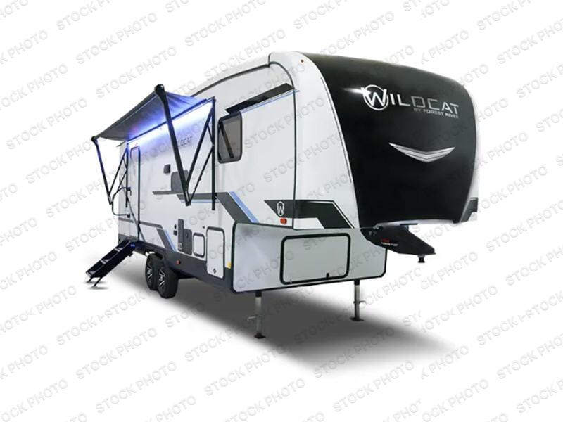 Elevate your camping experience with any Wildcat fifth wheel from Forest River. With a variety of floorplans, these models are flexible enough to accommodate any group. Convenient design touches like "easy clean" floors with no vents, plenty of storage throughout, and a pull out step stool make getting away a breeze. A tankless water heater means showering with plenty of hot water, and you'll always be comfortable with the 35,000 BTU furnace and the 13,500 air conditioner. There's even an option to add additional air conditioning units.
