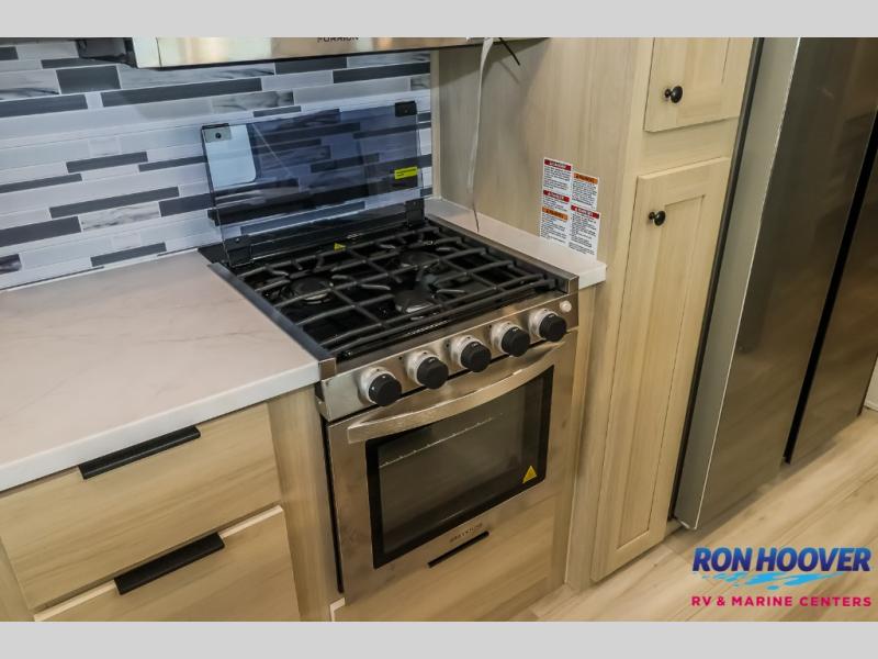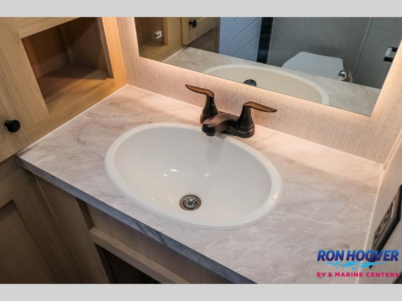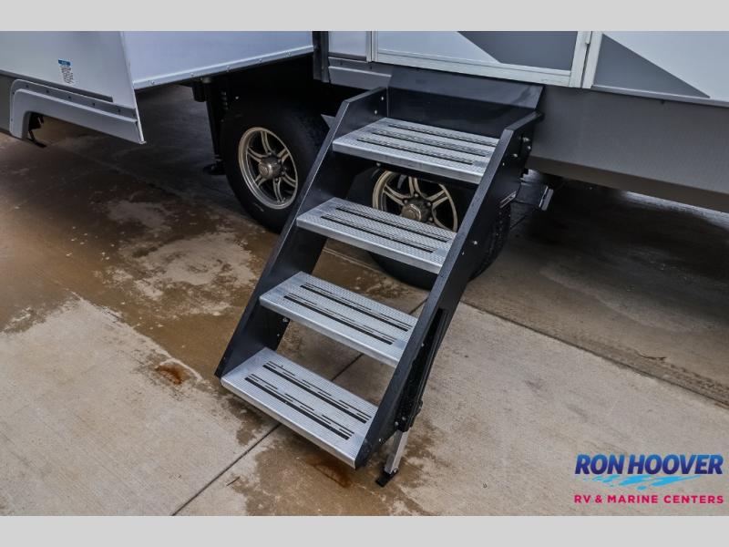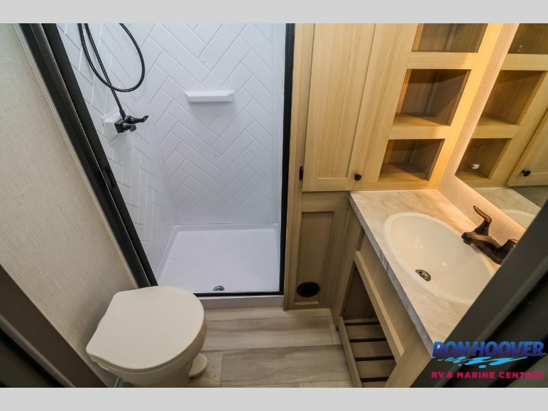 With any Wildcat fifth wheel by Forest River you will enjoy affordable luxury at every turn. These models are constructed with residential fiberglass insulation in the roof and floor, a sectioned ABS plastic underbelly armor, and a vacuum bonded, welded aluminum structure for added strength and durability. You will also find seamless roto-cast holding tanks, an outdoor shower, and 4-point auto leveling for quick and easy setup. Each model includes a best-in-class, high-efficiency 35,000 BTU furnace, along with a 18,000 BTU ducted A/C, with second and third A/C prep, plus an on-demand tankless water heater for added convenience. There are carpet-free living spaces, residential backsplash, motion lighting throughout, and many more comforts!