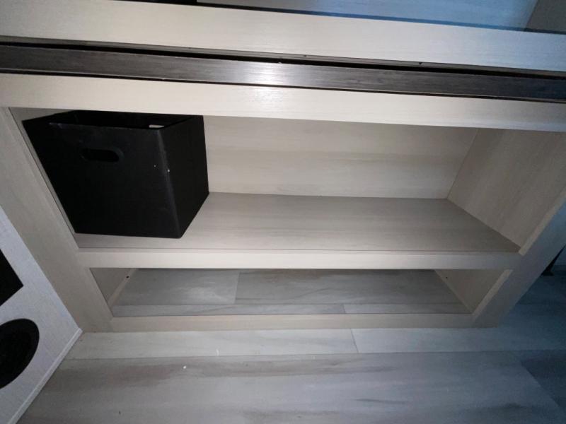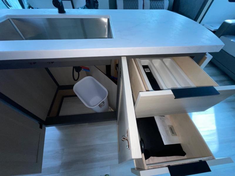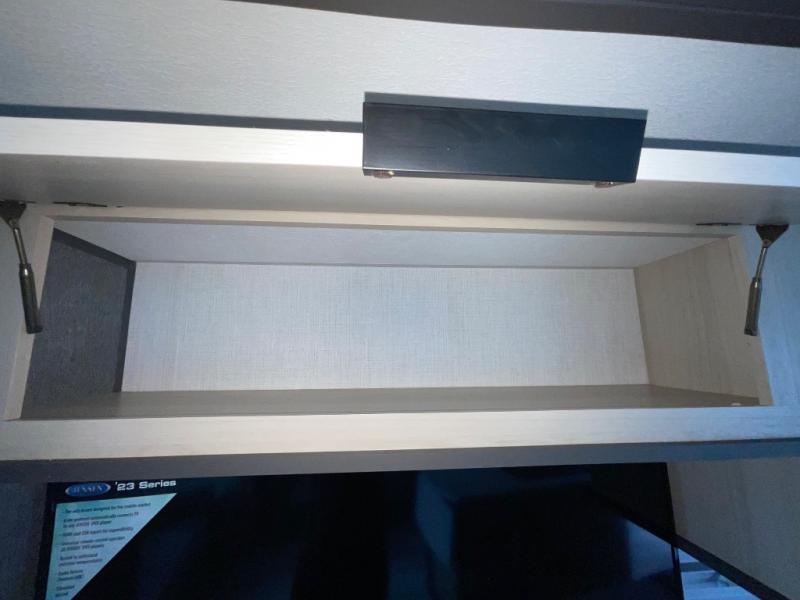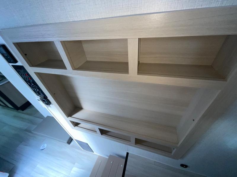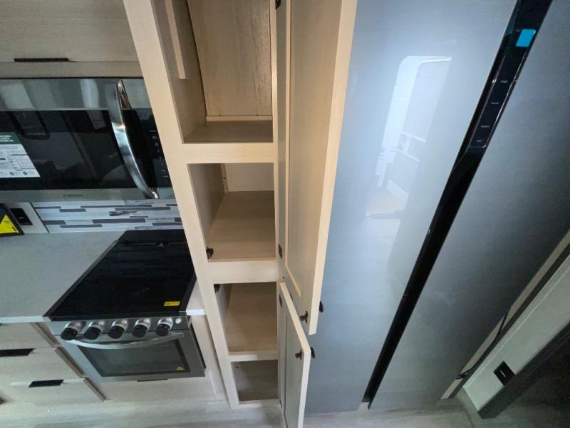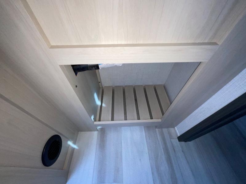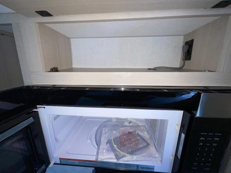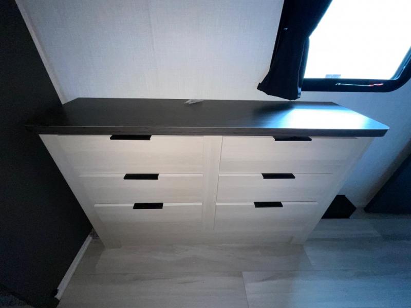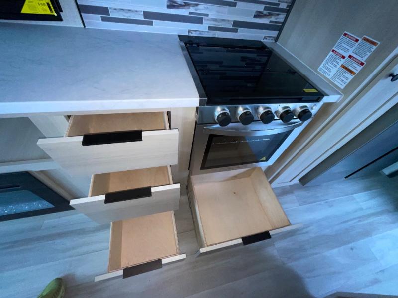 Wow! You won't believe the features found in this luxury fifth wheel that can sleep up to nine each night! Your guests or the kids will absolutely love the middle bunkroom with triple bunks and a loft above for even more sleeping or storage space. There is also a pull-out desk here, which will allow you to utilize this space as an office as well! You'll have your own space in the front private bedroom on the king bed slide out, and there is a walk-in wardrobe to keep your clothes tidy. There is even washer and dryer prep for the option to keep those clothes clean! The chef of your group will have everything they need to prepare meals, including a 21" 2-in-1 oven range, an over-the-range microwave, a 16 cu. ft. 12V refrigerator, plus a kitchen island for more counter space. In the evenings, your crew can get cozy on the rear sofa and theater seats across from the entertainment center and fireplace, or you might just play a game at the hi-top table and chairs!