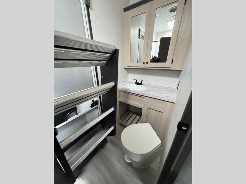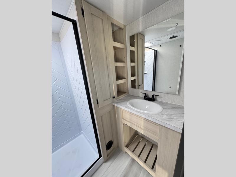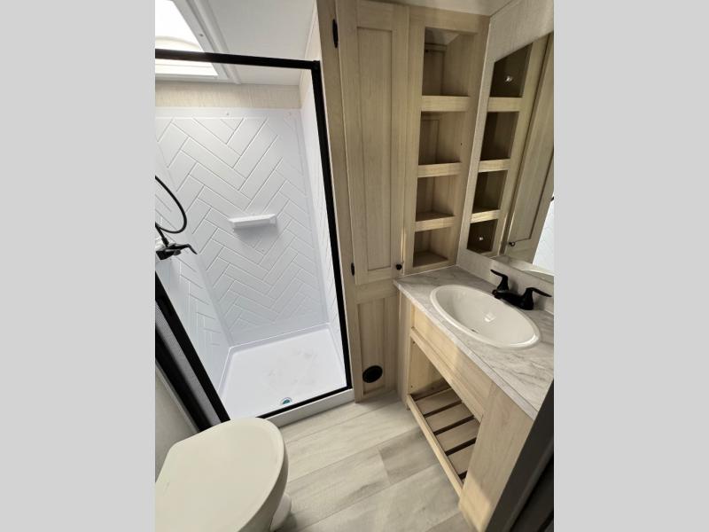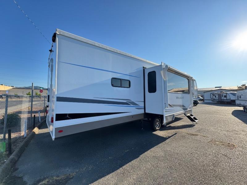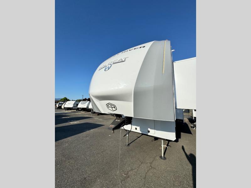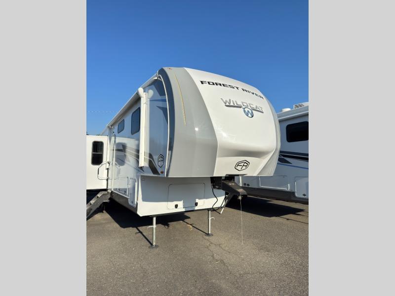 With any Wildcat fifth wheel by Forest River you will enjoy affordable luxury at every turn. These models are constructed with residential fiberglass insulation in the roof and floor, a sectioned ABS plastic underbelly armor, and a vacuum bonded, welded aluminum structure for added strength and durability. You will also find seamless roto-cast holding tanks, an outdoor shower, and 4-point auto leveling for quick and easy setup. Each model includes a best-in-class, high-efficiency 35,000 BTU furnace, along with a 18,000 BTU ducted A/C, with second and third A/C prep, plus an on-demand tankless water heater for added convenience. There are carpet-free living spaces, residential backsplash, motion lighting throughout, and many more comforts!