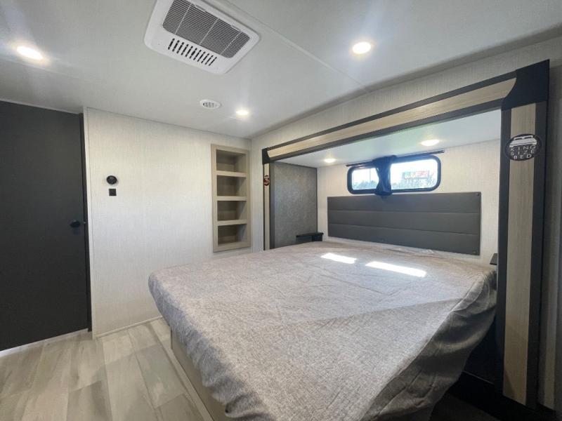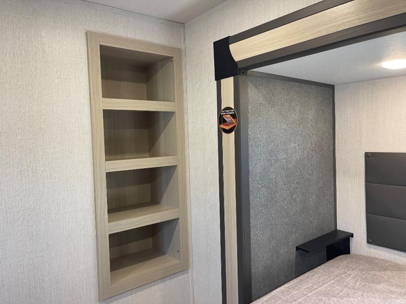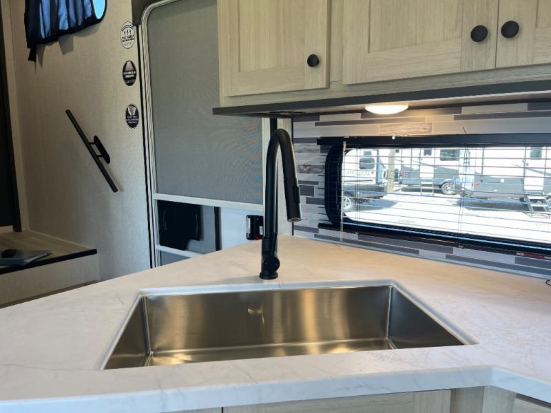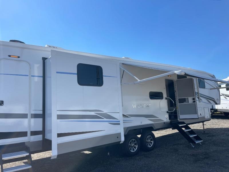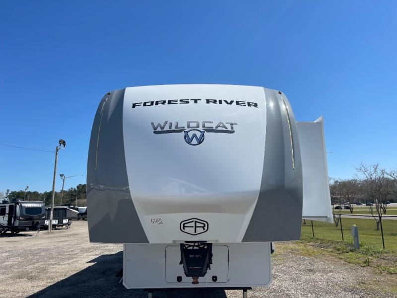 With any Wildcat fifth wheel by Forest River you will enjoy affordable luxury at every turn. These models are constructed with residential fiberglass insulation in the roof and floor, a sectioned ABS plastic underbelly armor, and a vacuum bonded, welded aluminum structure for added strength and durability. You will also find seamless roto-cast holding tanks, an outdoor shower, and 4-point auto leveling for quick and easy setup. Each model includes a best-in-class, high-efficiency 35,000 BTU furnace, along with a 13,500 BTU ducted A/C, with second and third A/C prep, plus an on-demand tankless water heater for added convenience. There are carpet-free living spaces, residential backsplash, motion lighting throughout, and many more comforts!
