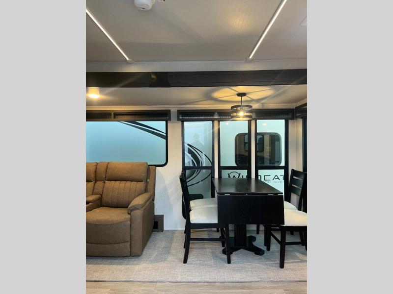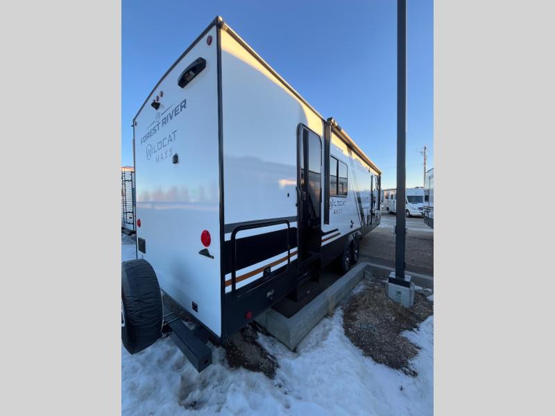Each Forest River Wildcat MAXX travel trailer is constructed with 2" thick Vacuum-Bonded sidewalls, Maxx-strength aluminum-framed laminated floor, and reflective Astro-Foil insulation in the roof for added protection. The Dynamic Technology Package includes a frame-mounted receiver hitch, a battery disconnect, and a 200-watt solar panel for off-grid capabilities. You will also enjoy the Peak Package with a power tongue jack, solid surface kitchen countertops, a 21" 2-In-1 range and oven, an on-demand tankless water heater, and more convenient features.