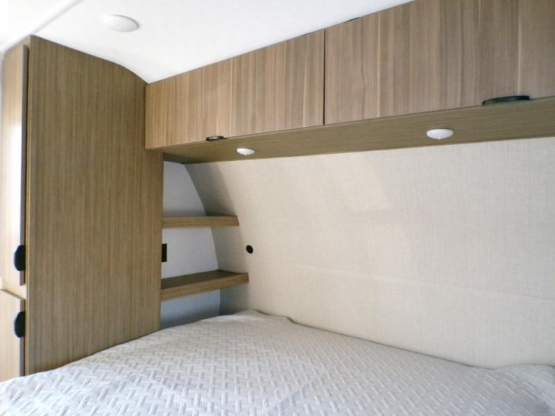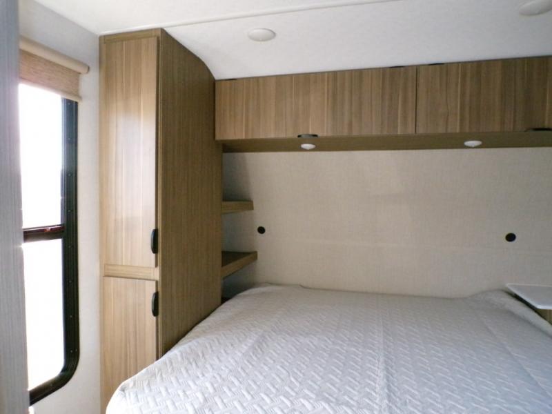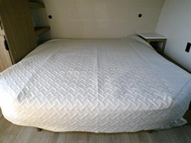 - Versa-Tilt Custom King Bed: In the front private bedroom, you’ll find a custom king bed with a tilt feature for added comfort, surrounded by nightstands and wardrobes to keep your essentials organized.