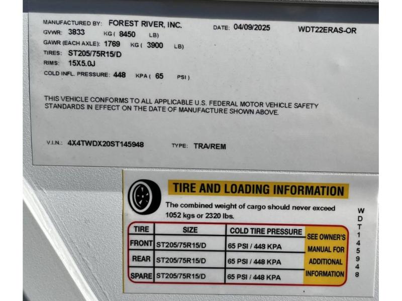 New 2025 Forest River RV Wildwood 22ERAS Travel Trailer