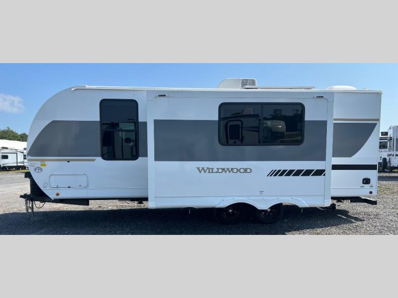 Enjoy years and years of memories with any one of these Forest River Wildwood travel trailers! They are built with a Dicor PVC roof membrane, a powder coated I-beam frame, and an aerodynamic front radius profile for an easier tow. The triple seal slide out system prevents water from seeping inside and keeps it outside where it belongs. The Best In Class Value Package includes upgraded designer furniture, seamless countertops with no T-mold, and two zone residential soundbars with FM, Bluetooth, HDMI and USB. You will also appreciate the heated and enclosed Accessi-Belly with removable underbelly panels, the power tongue jack with an LED light, and the designated CPAP storage. Some new upgraded features include: an upgraded slide-out fascia, a Versa-Tilt bed, an upgraded shower head, and a 60K BTU tankless water heater, and so much more!