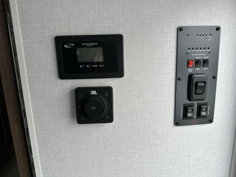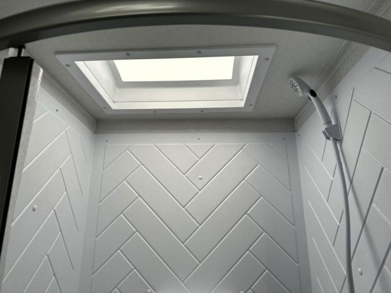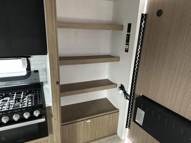 As you escape to the beautiful countryside, or embark across the country to visit family, you'll find that the modern amenities found in this Wildwood travel trailer will deliver the ultimate enjoyment all along the way! Relax on a chaise lounge that includes a table in front so that you can enjoy your morning coffee. When you are ready to face the day ahead, you can grab a towel from the linen closet in the rear bathroom and enjoy the walk-in shower before heading out for a day full of adventure. At night, a custom king bed with Versa Tilt for a great night's rest. You will appreciate the pass-through storage, entertainment center with fireplace, and walk-in pantry for all the goodies!