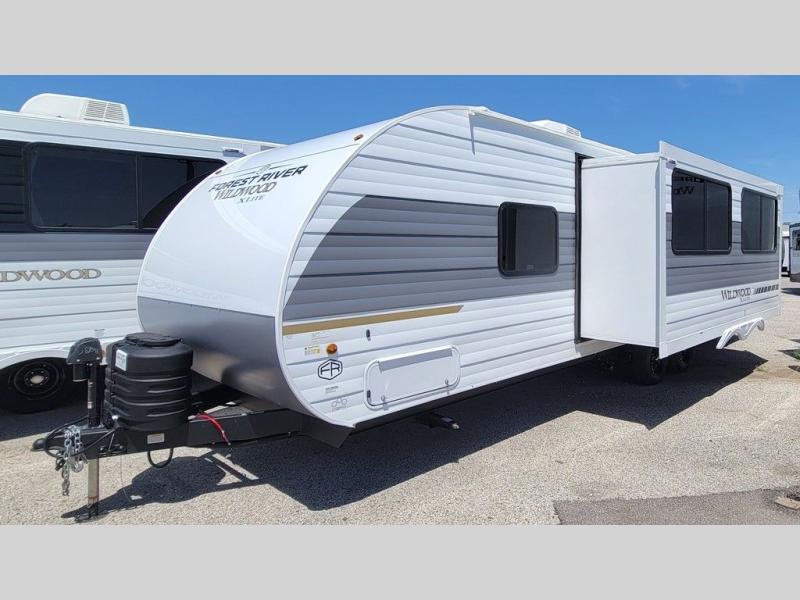 The Wildwood X-Lite travel trailers are packed with hassle-free camping amenities! There are a variety of floorplans to choose from between three different regions. The enclosed Accessibelly will help protect against the elements and debris during transport, and the exterior retro/metal redesign is sure to be eye-catching! There are stylish roller shades inside, along with updated backsplash, elegant curtain rods and curtains, plus many more interior comforts! Choose a Wildwood X-Lite travel trailer today for quality and value!