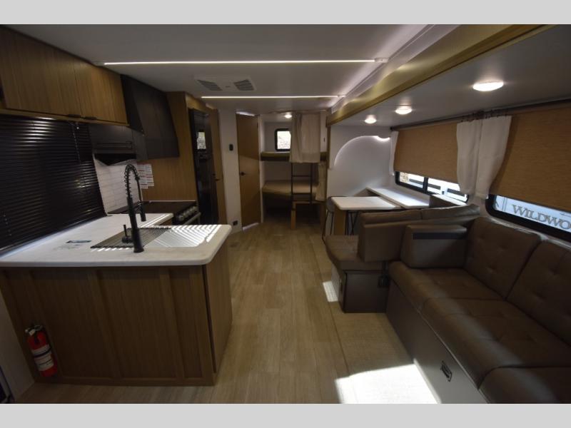 Enjoy years and years of memories with any one of these Forest River Wildwood travel trailers! They are built with a Dicor PVC roof membrane, a powder coated I-beam frame, and an aerodynamic front radius profile for an easier tow. The triple seal slide out system prevents water from seeping inside and keeps it outside where it belongs. The Best In Class Value Package includes upgraded designer furniture, seamless countertops with no T-mold, and two zone residential soundbars with FM, Bluetooth, HDMI and USB. You will also appreciate the heated and enclosed Accessi-Belly with removable underbelly panels, the power tongue jack with an LED light, and the designated CPAP storage. Some new upgraded features include: an upgraded slide-out fascia, a Versa-Tilt bed, an upgraded shower head, and a 60K BTU tankless water heater, and so much more!